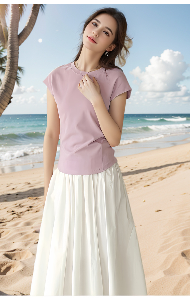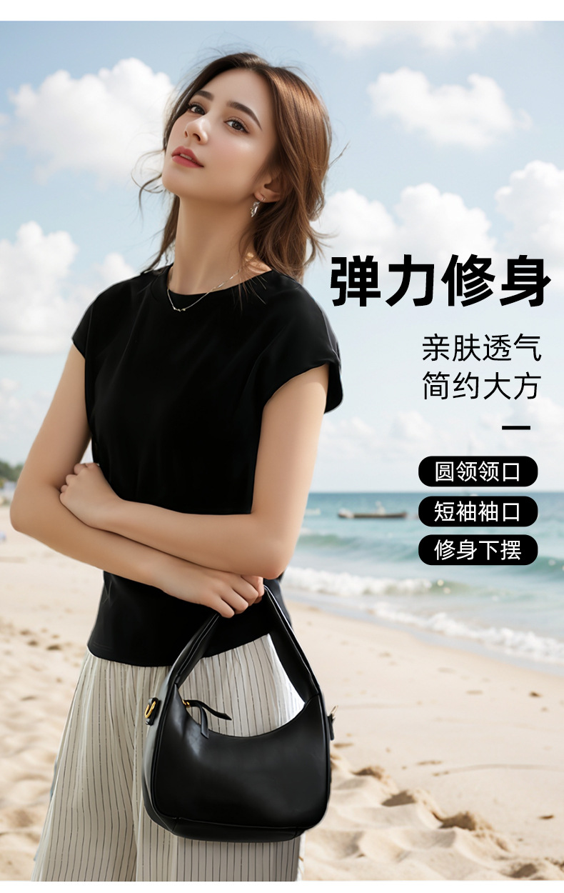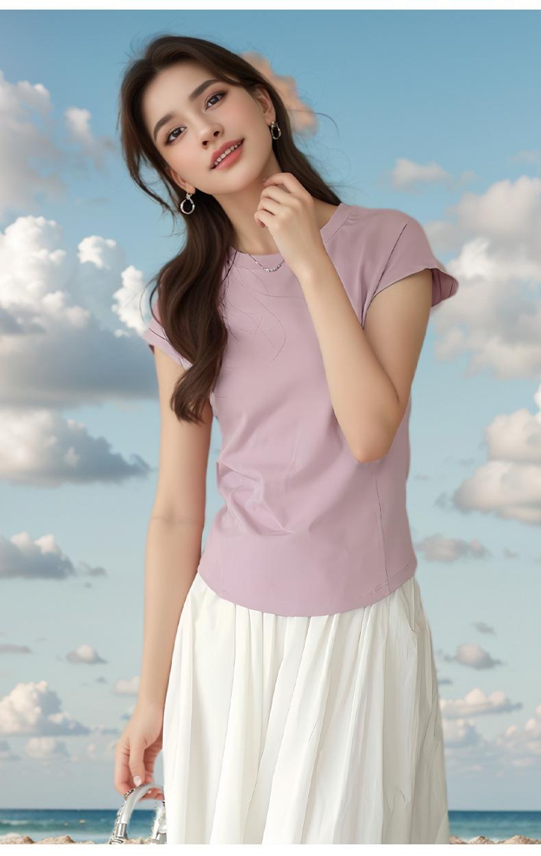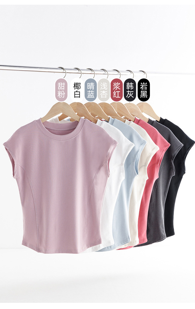 Sepatu dansa wanita lengan pendek, baju slim-fit atasan modis lengan pendek baju latihan tari modern 39918