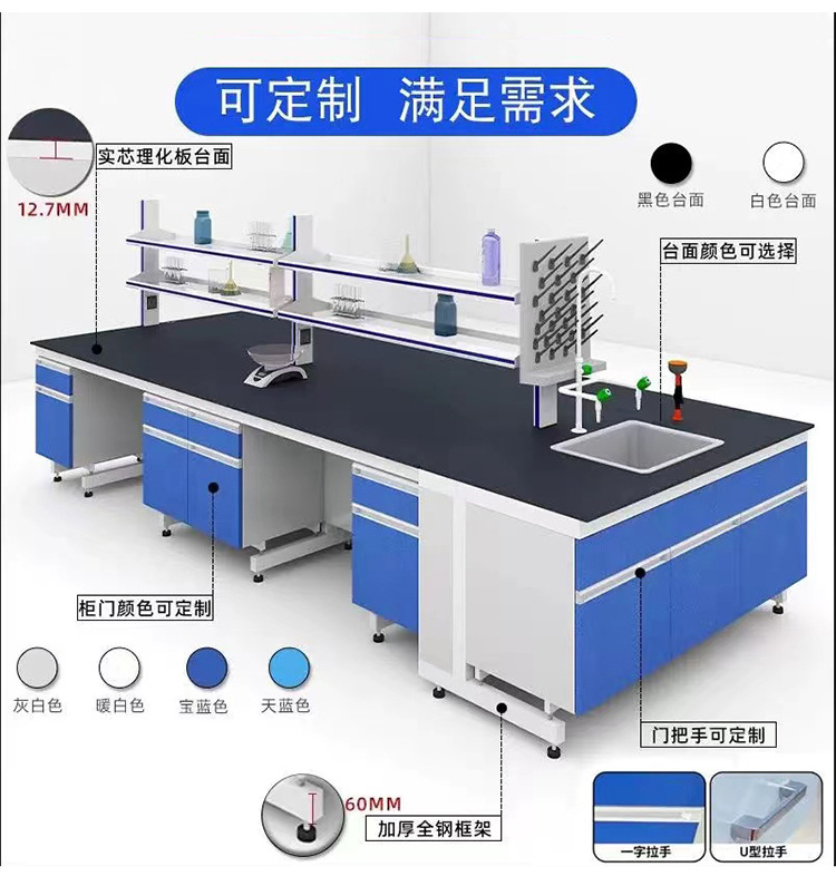 Konsol laboratorium meja laboratorium semua baja tudung asap kayu baja meja tengah meja kerja laboratorium kimia