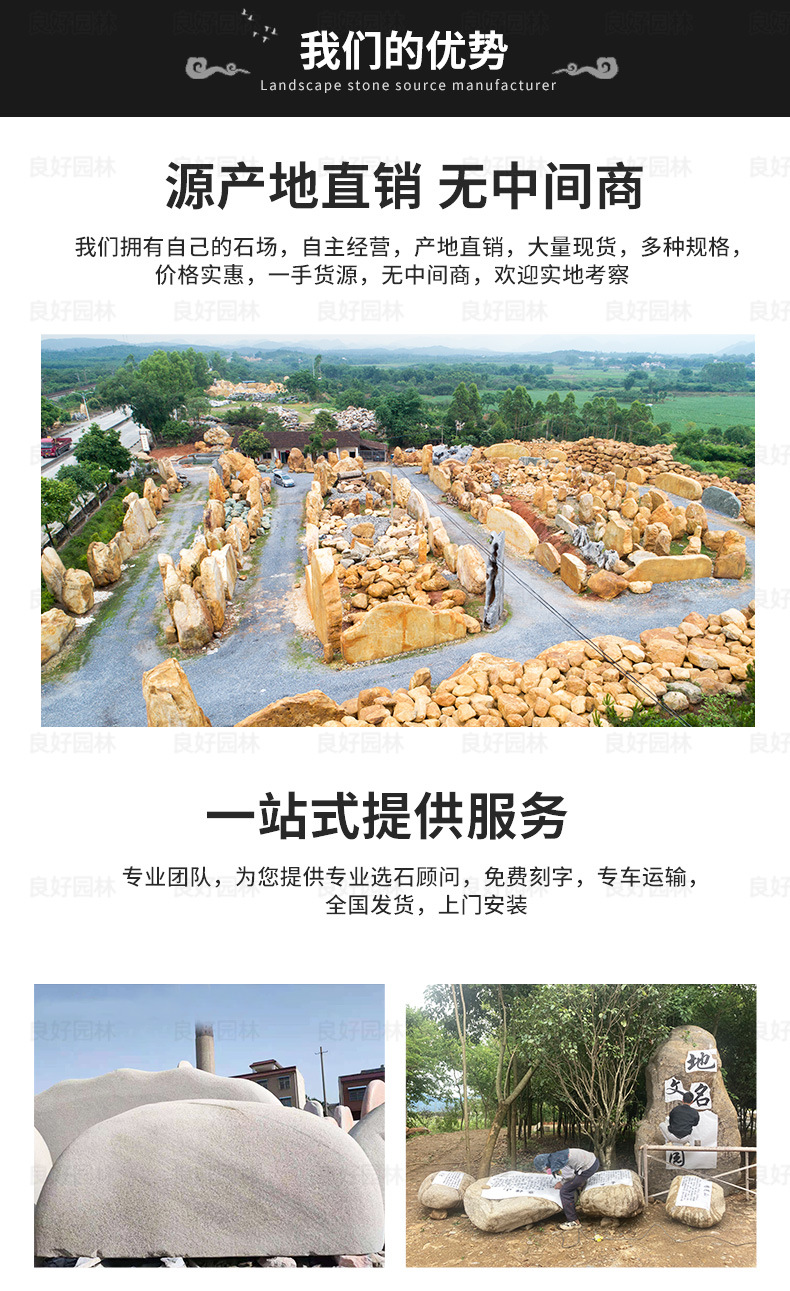 Granit terukir Guangdong pemandangan taman besar batu asal pintu taman nomor batu batu rami horizontal batu lanskap taman kampus