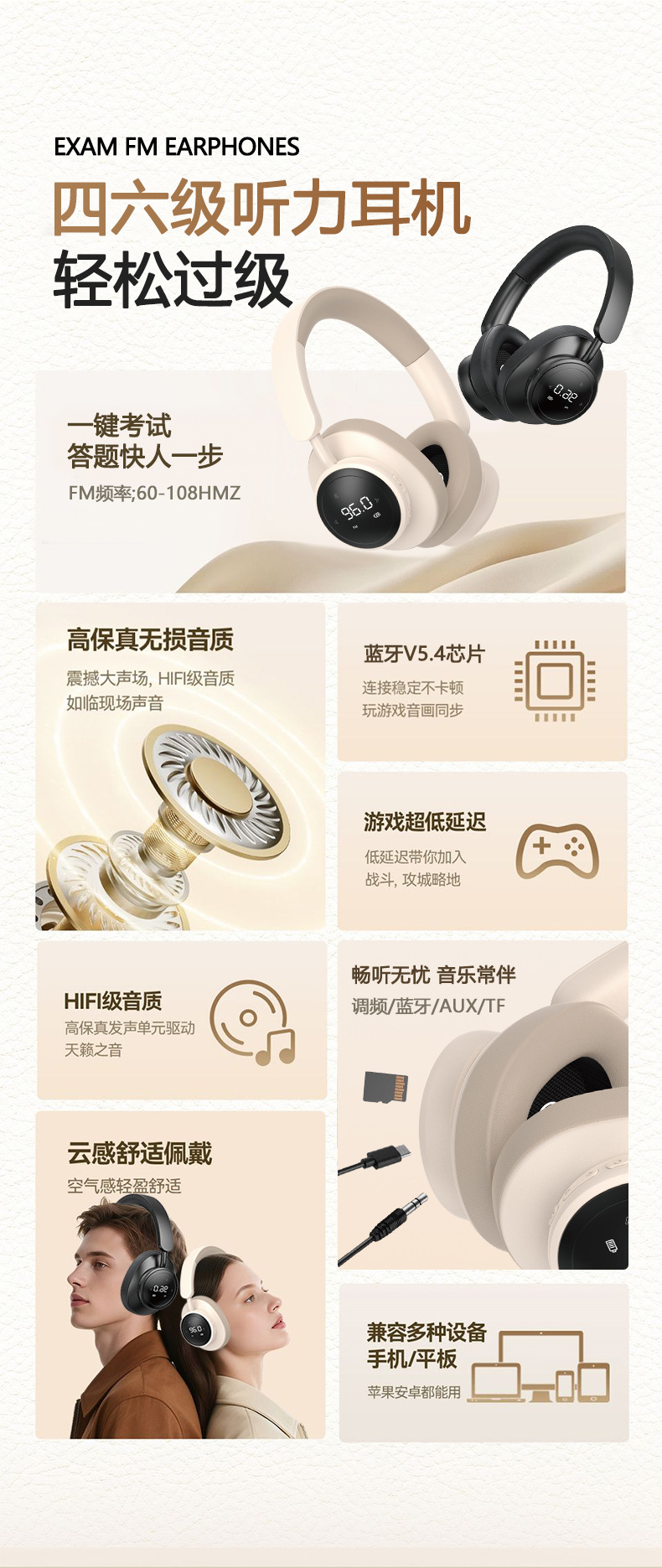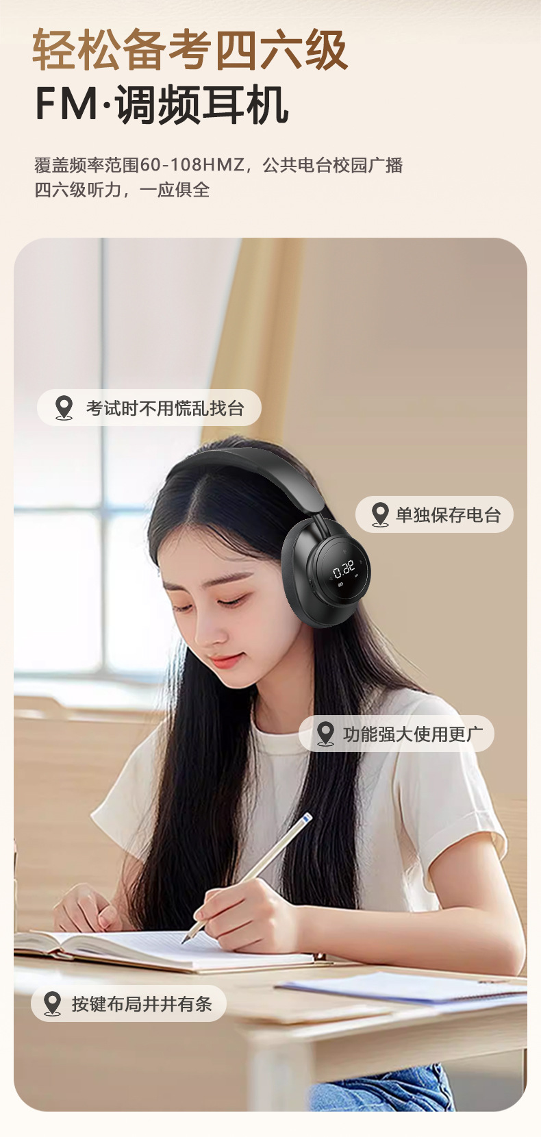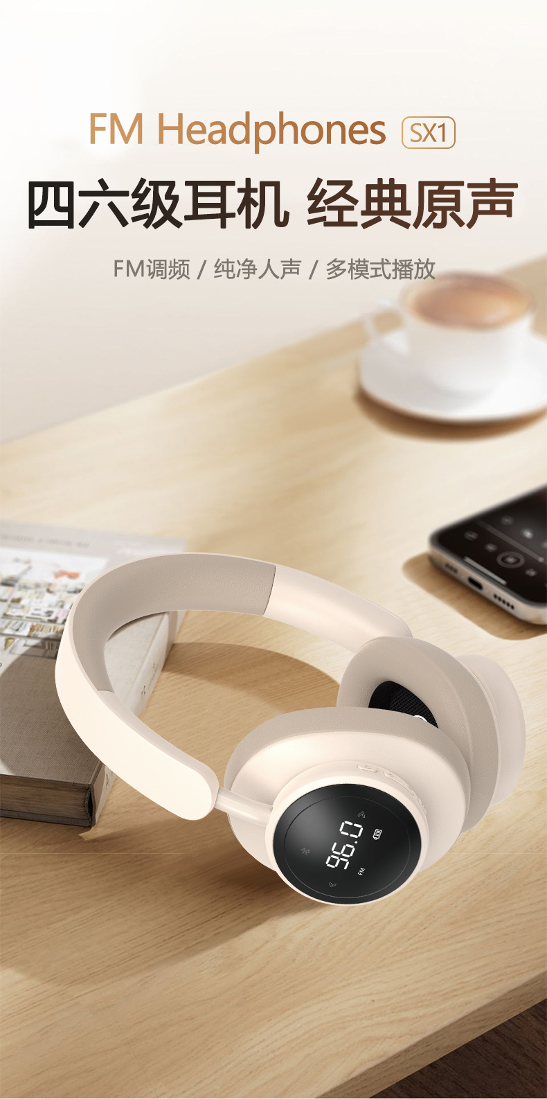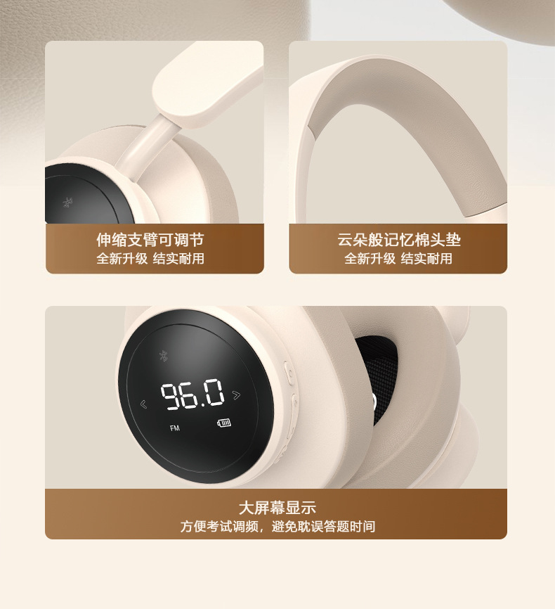 Headphone FM yang dapat dipasang di kepala untuk ujian mendengar CET-4 dan CET-6, headset siswa FM nirkabel sejati SX1 yang dapat dimasukkan kartu Bluetooth.