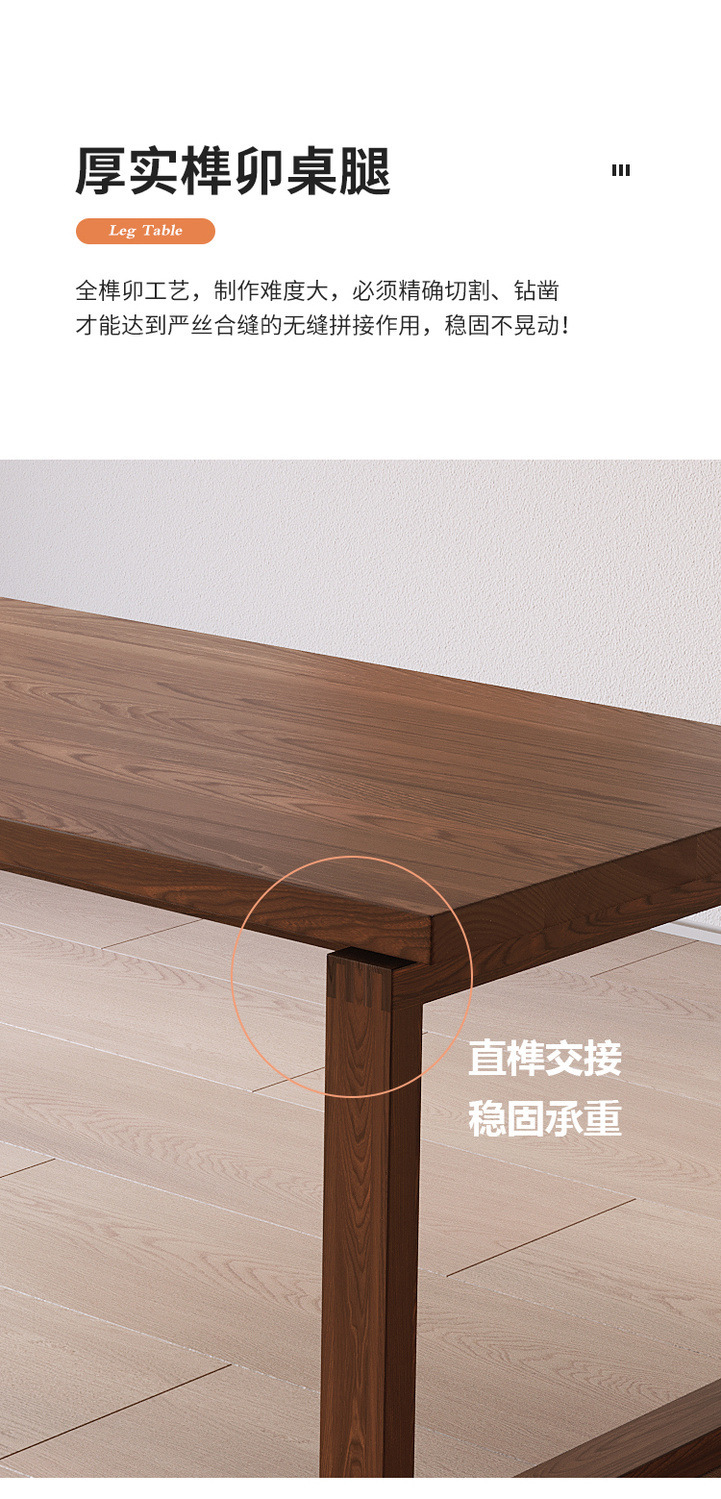 北欧实木莫比恩餐桌书桌一体长方形客厅家用白蜡木原木风长木桌子