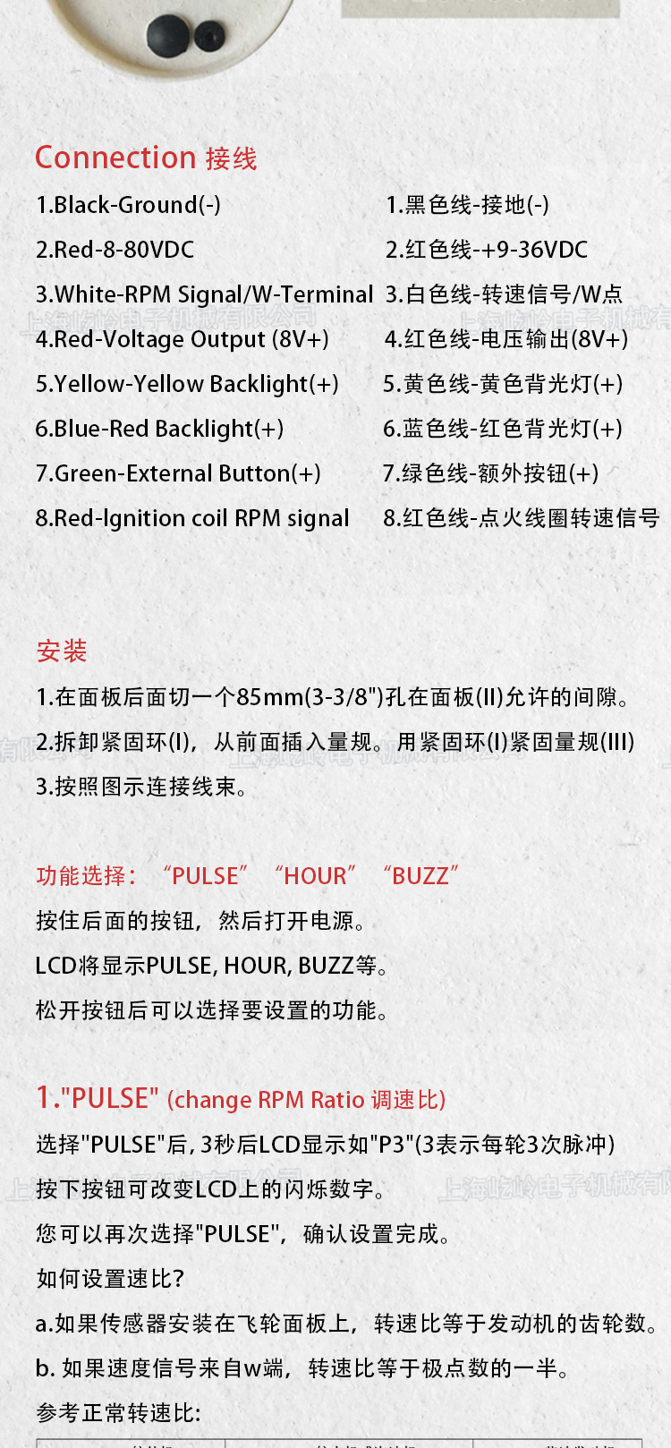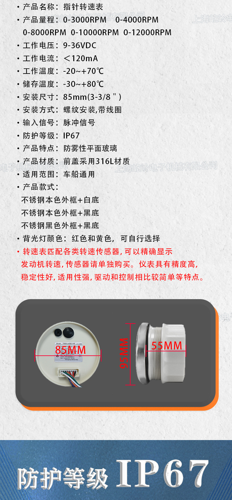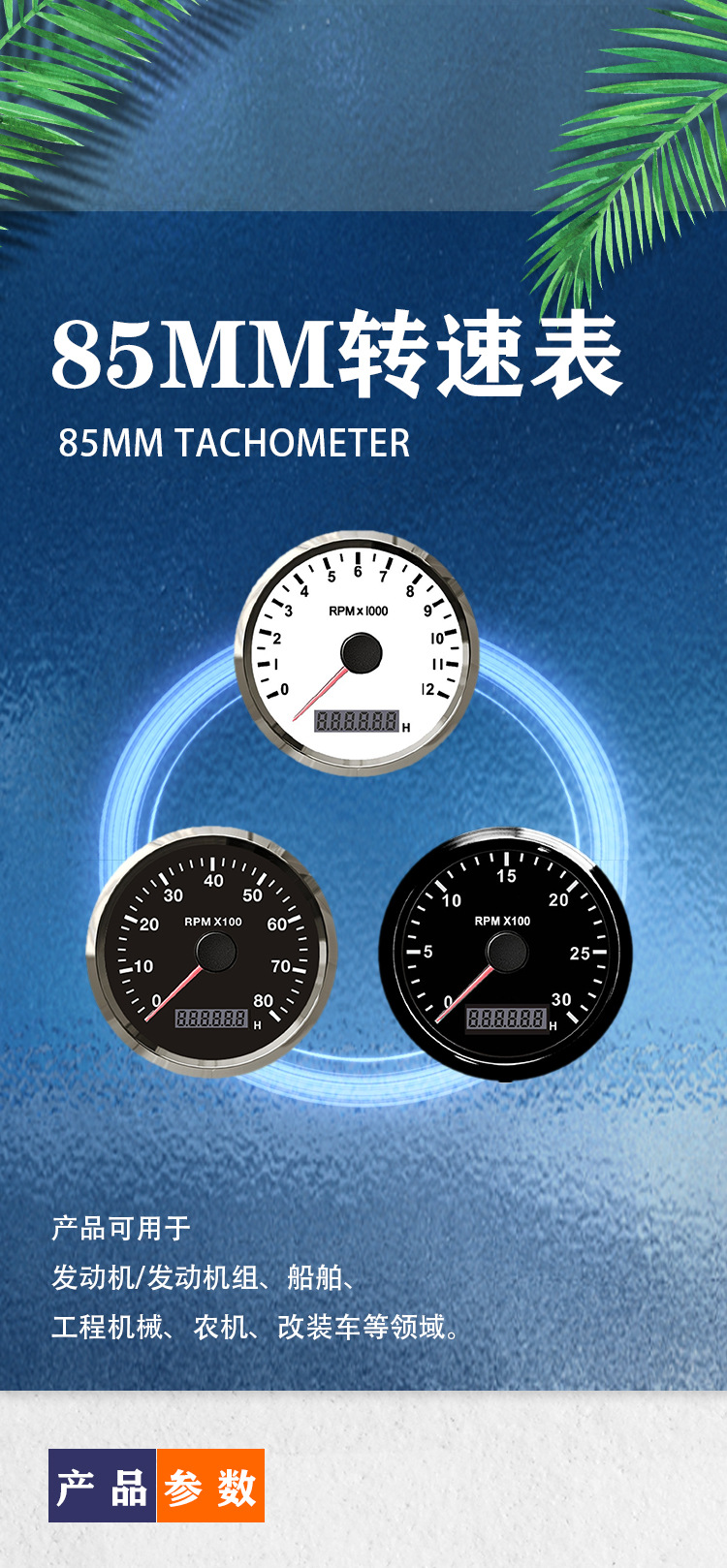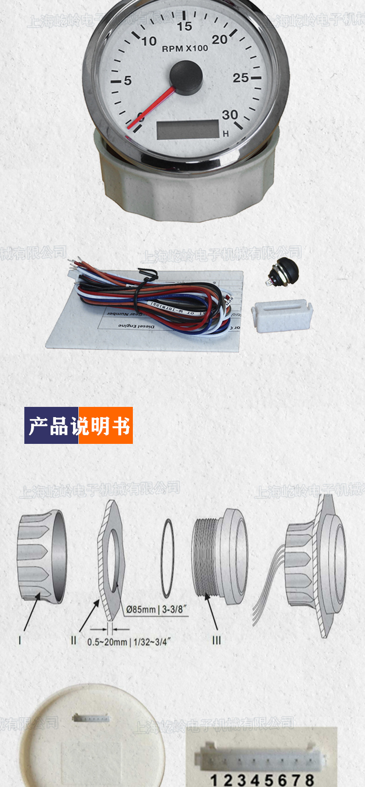 Instrumen mobil modifikasi 85mm, mesin tachometer penunjuk 3000RPM, instrumen laut mobil dengan lampu latar