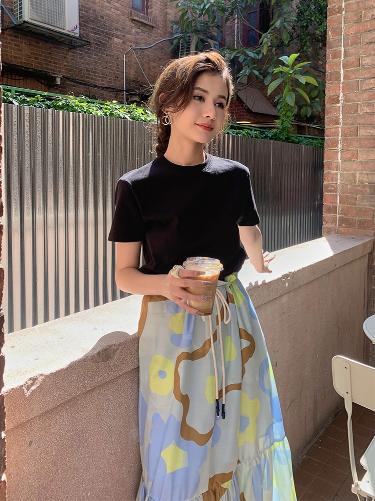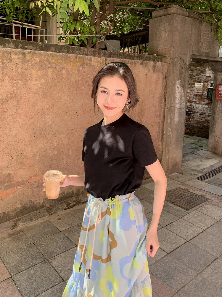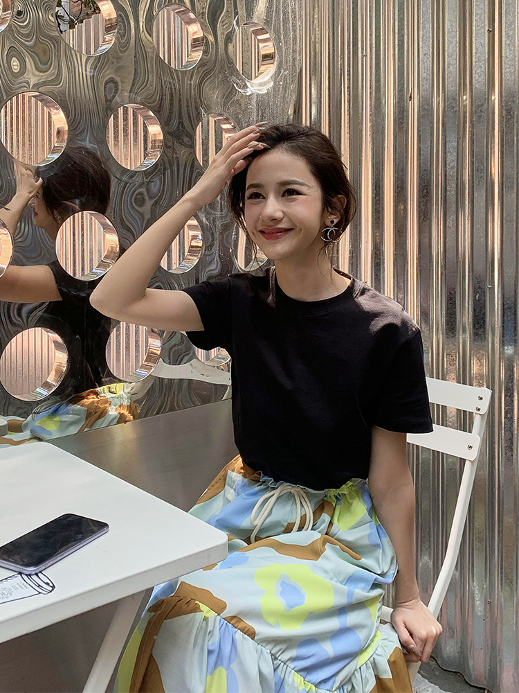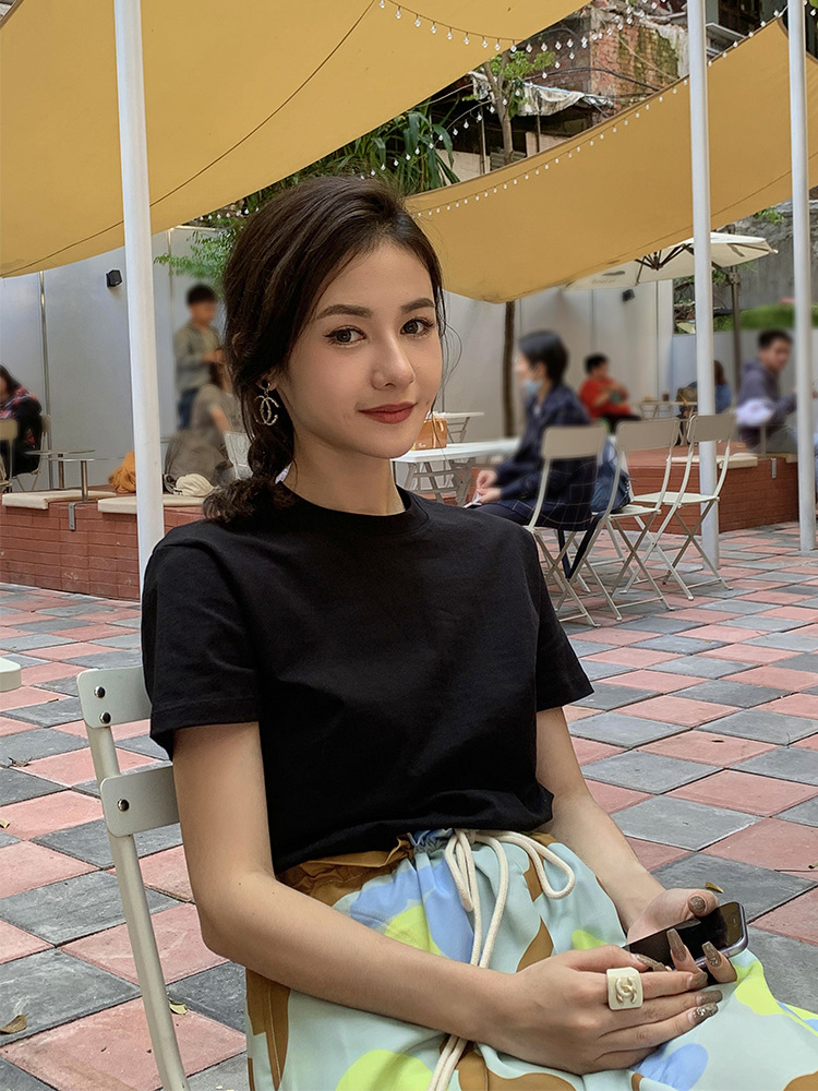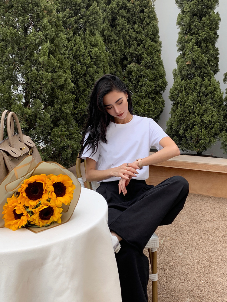 Kaos putih katun murni untuk wanita, bahu regular, gaya baru musim semi/musim panas 2026 ~ kemeja dasar lengan pendek warna solid, dapat dikenakan di luar, atasan lapisan dalam leher bulat