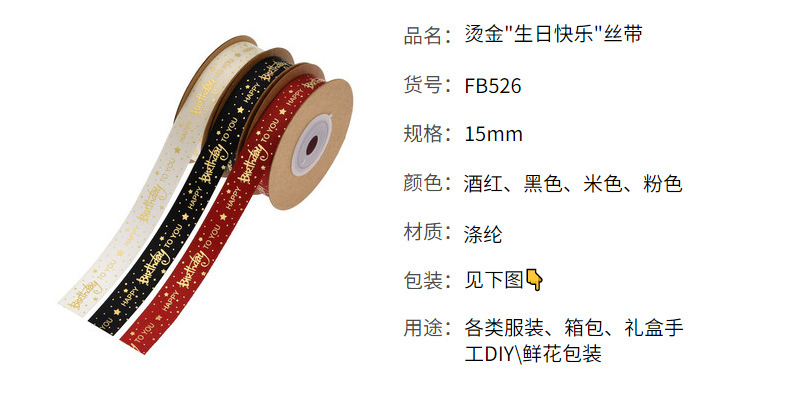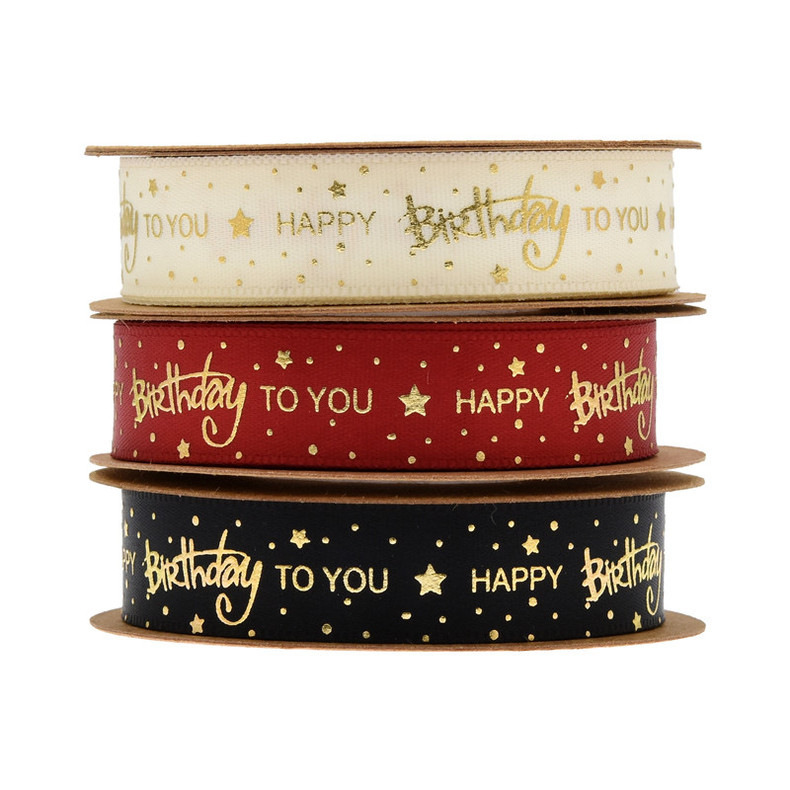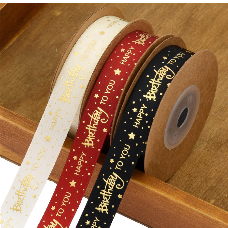 Lintas batas baru penyepuhan cetakan Selamat Ulang Tahun pita kue bunga hadiah kemasan pita cetak dalam stok