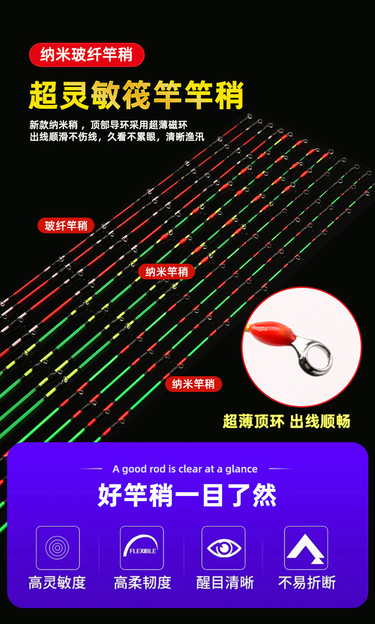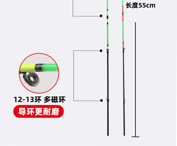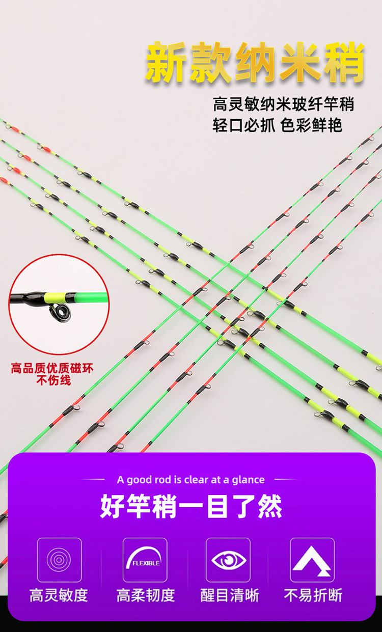 Joran rakit Nano sedikit tidak mudah pecah, tongkat pancing serat kaca sedikit ditingkatkan, cincin memancing multi-magnetik ekor sedikit lembut