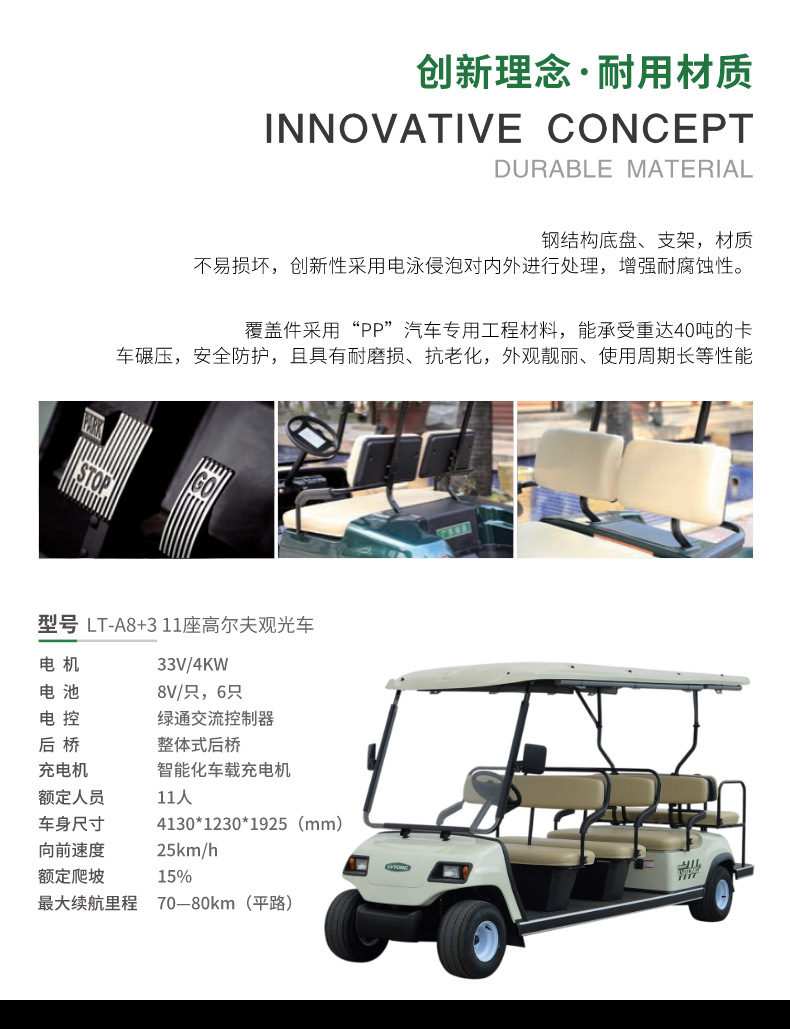 Lv tong mobil golf empat roda 11 kursi, mobil tamasya terbuka dengan ruang tampilan lebar dan kenyamanan Tinggi
