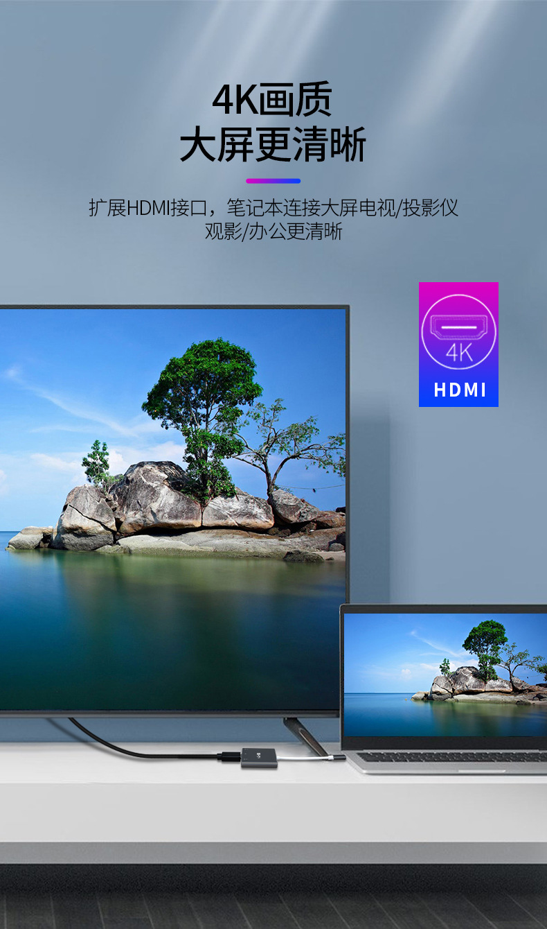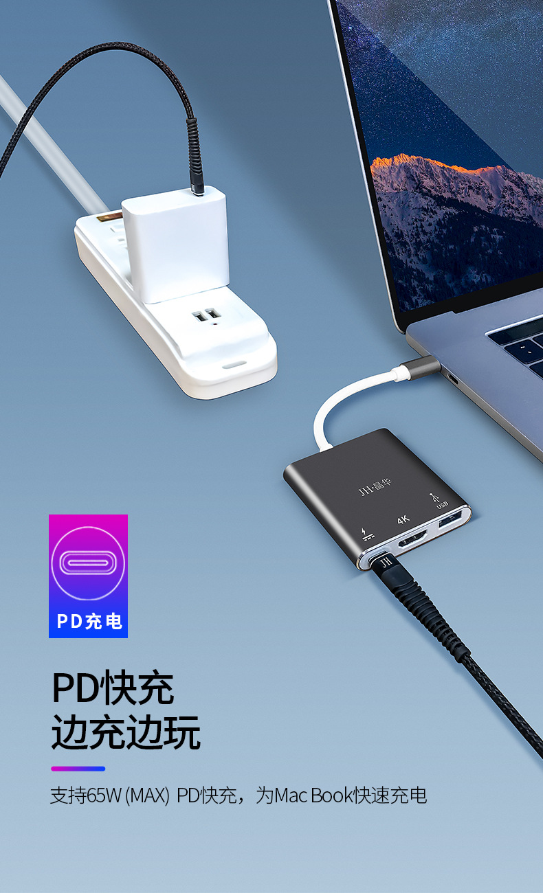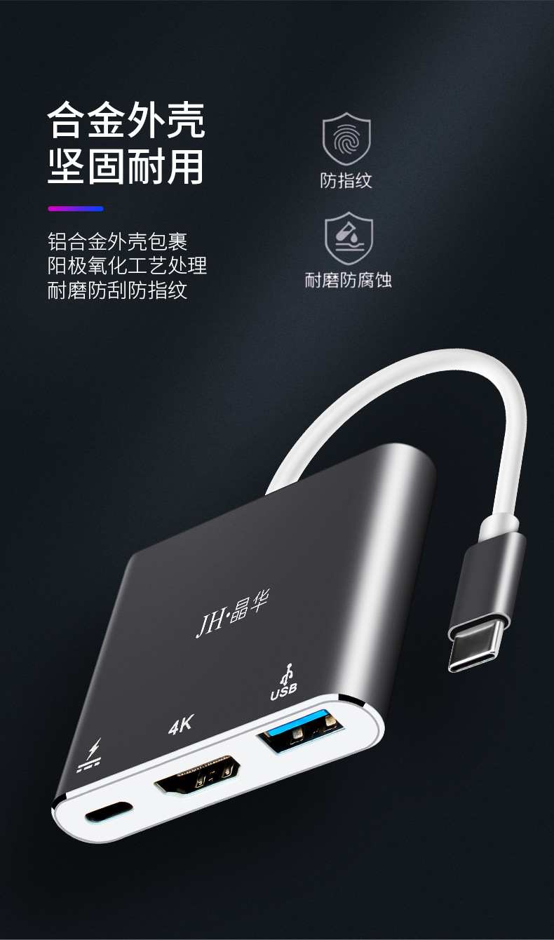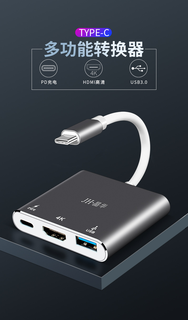 Docking station Jinghua typec memperluas adaptor HDMI dengan antarmuka USB3.0 untuk komputer dan laptop dengan berbagai antarmuka.