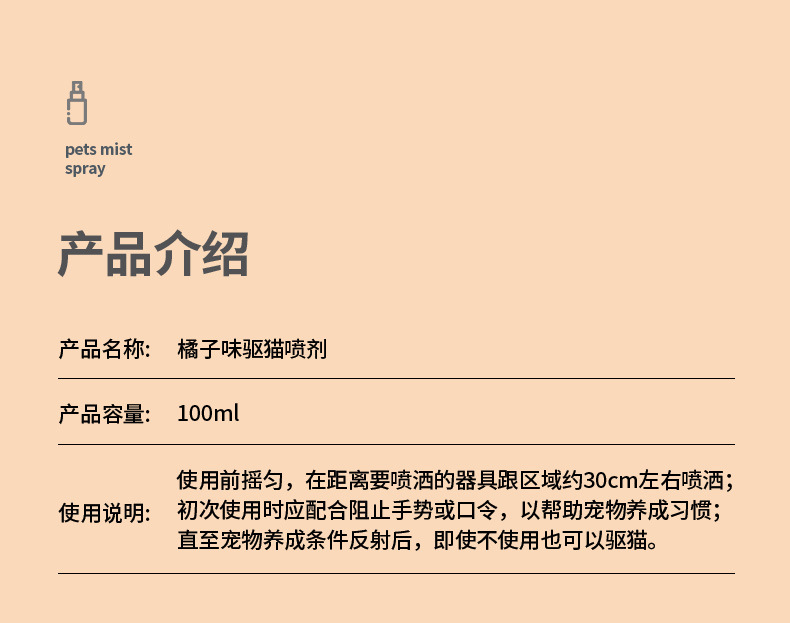 Hewan peliharaan Qingxiang mengusir semprotan kucing dengan rasa jeruk untuk mencegah kucing tidur