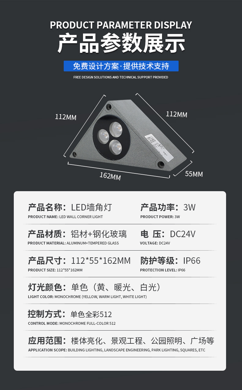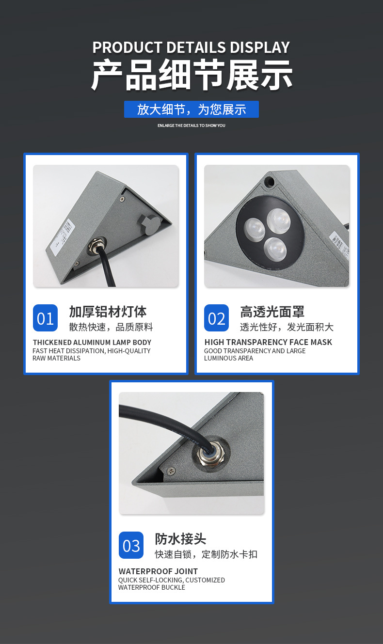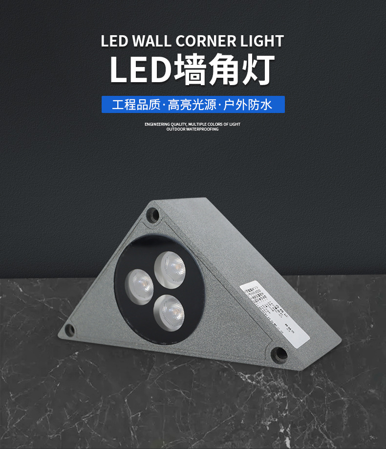 LED3w lampu sudut tangga, lampu langkah segitiga tahan air lampu sudut dinding samping