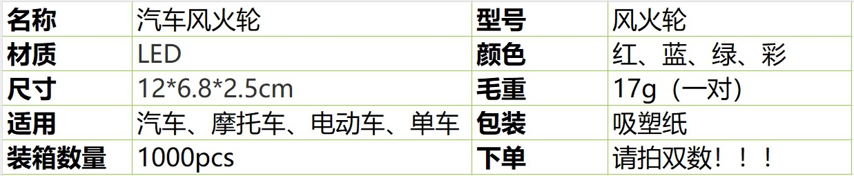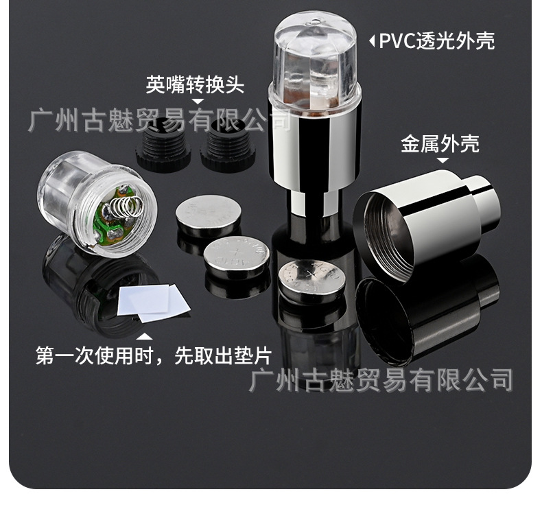 1、风火轮自带三粒AG10电池,安装时请准确对好正负极,无字的一头面向弹簧。