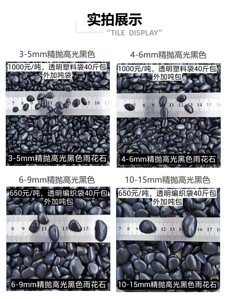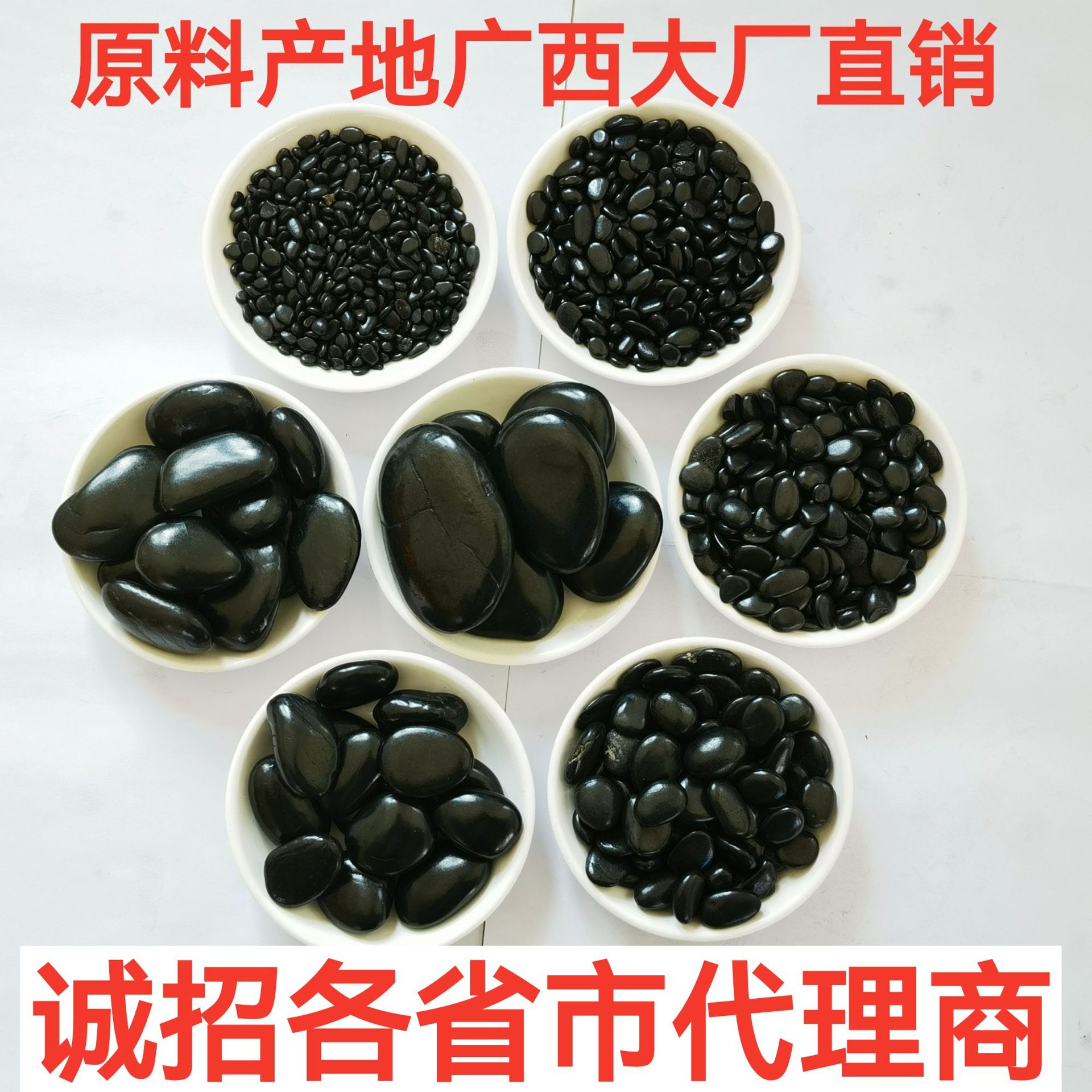 Pemandangan taman batu hujan hitam batu kerikil dipoles hitam batu lanskap taman teknik dipoles warna-warni batu hujan
