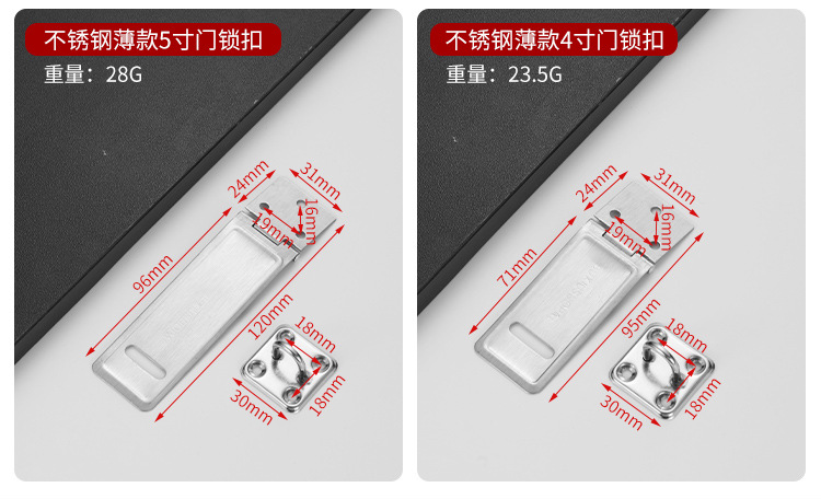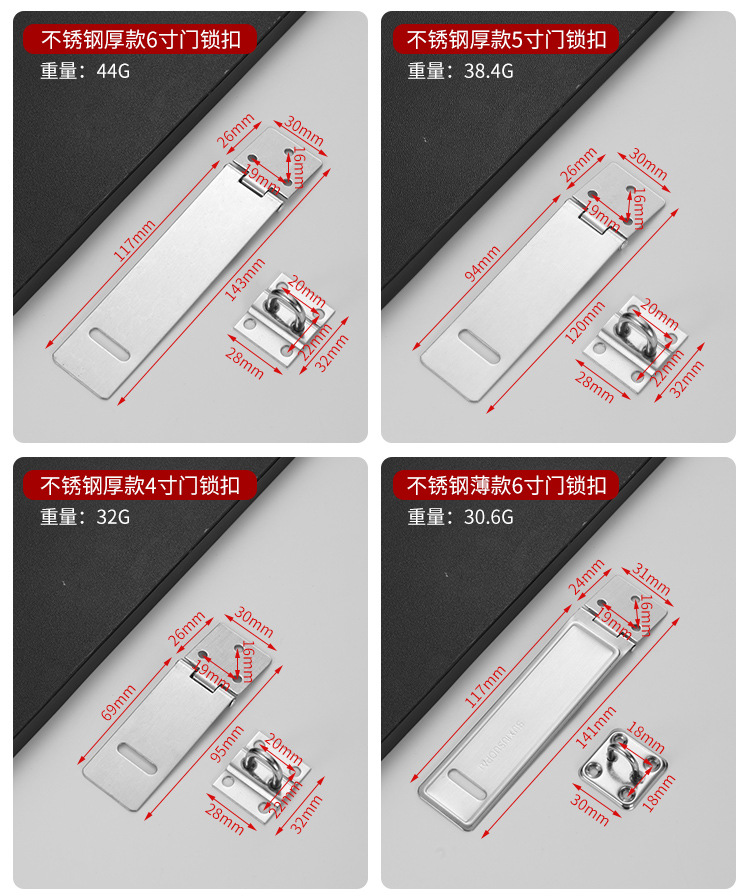 Kunci gembok baja tahan karat, kartu tebal anti-maling Aksesori bagasi gesper kecil pintu kayu tua kunci Stainless steel