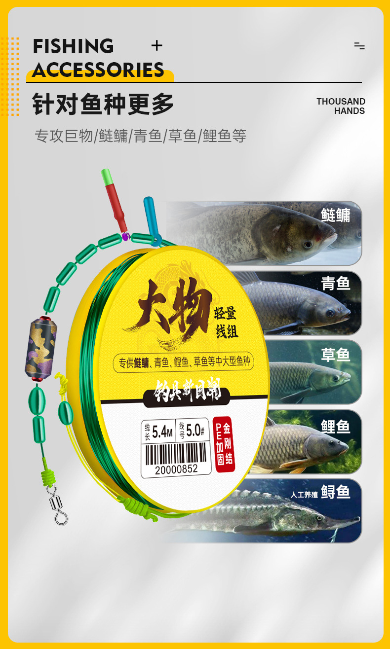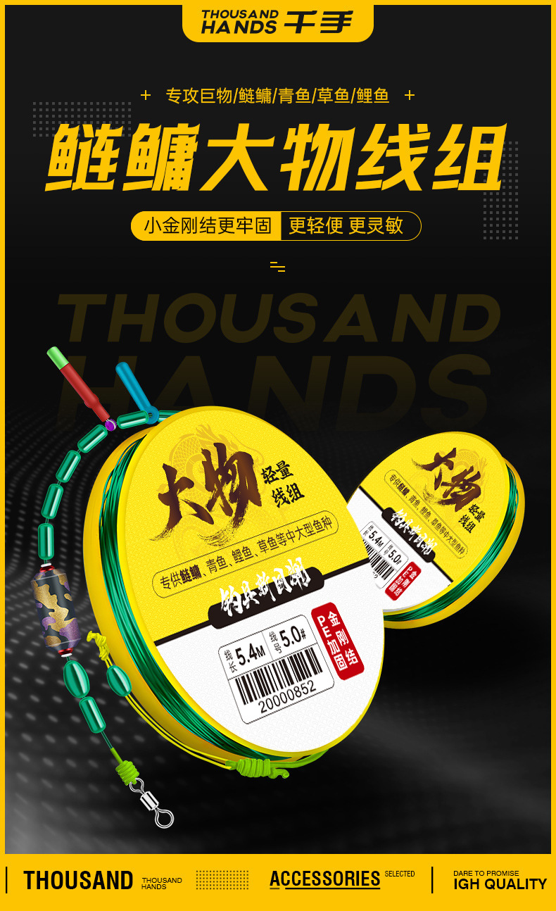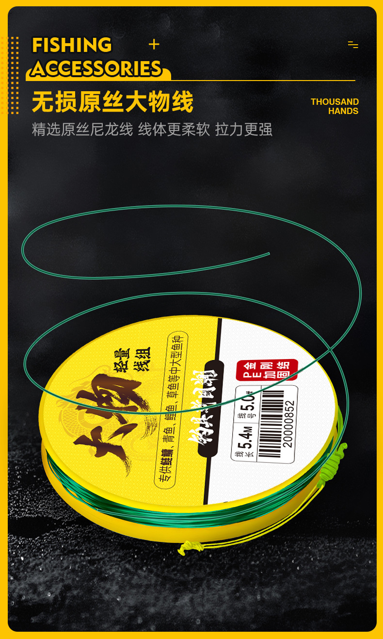 Qianhaoyu Grup Kabel Bahan Ringan dan Besar Jalur Utama Ikan Lele Rumput Hijau Produk Jadi PE Diperkuat Jalur Utama Pancing Ikan Produk Jadi