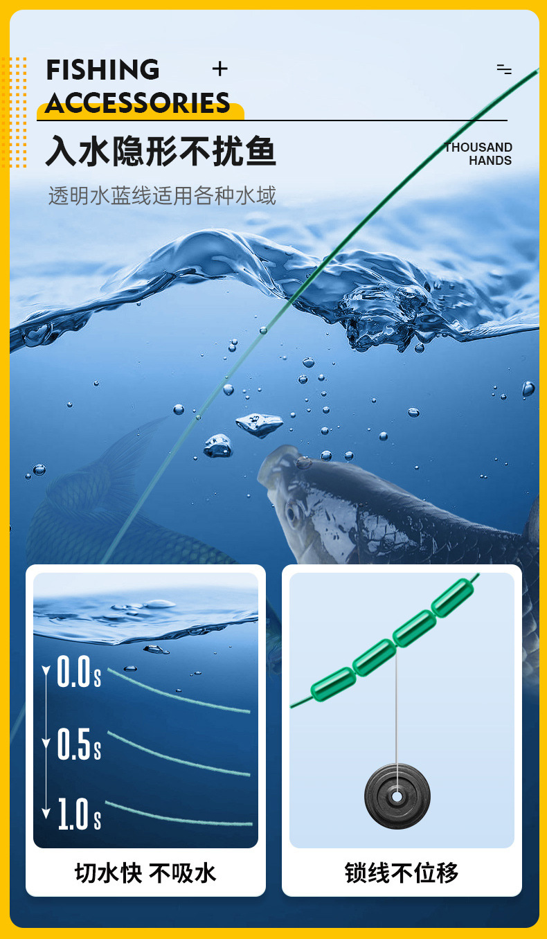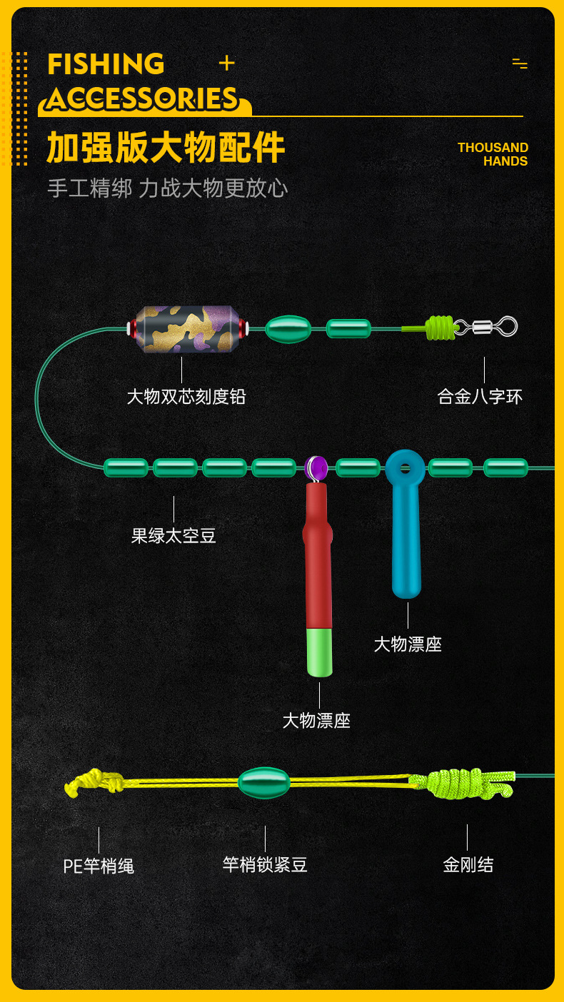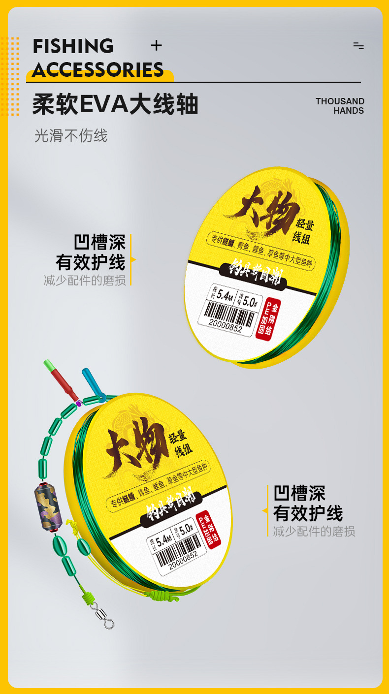 Qianhaoyu Grup Kabel Bahan Ringan dan Besar Jalur Utama Ikan Lele Rumput Hijau Produk Jadi PE Diperkuat Jalur Utama Pancing Ikan Produk Jadi