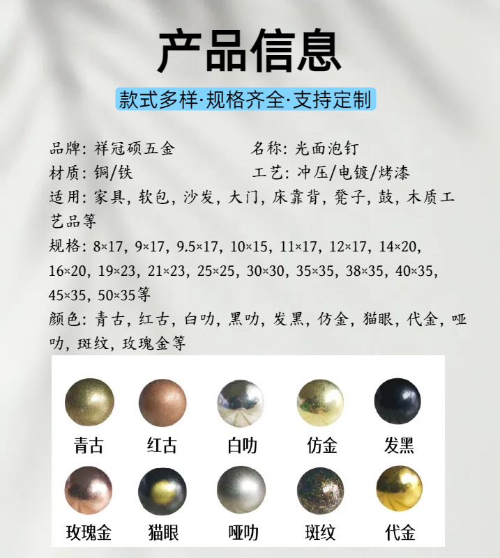 Paku Bercahaya Permukaan Antik Gaya Tiongkok Baru Sofa Paku Tembaga Aksesori Perangkat Keras Perabotan Perabotan Besi Tembaga Paku Sofa Berbusa Retro