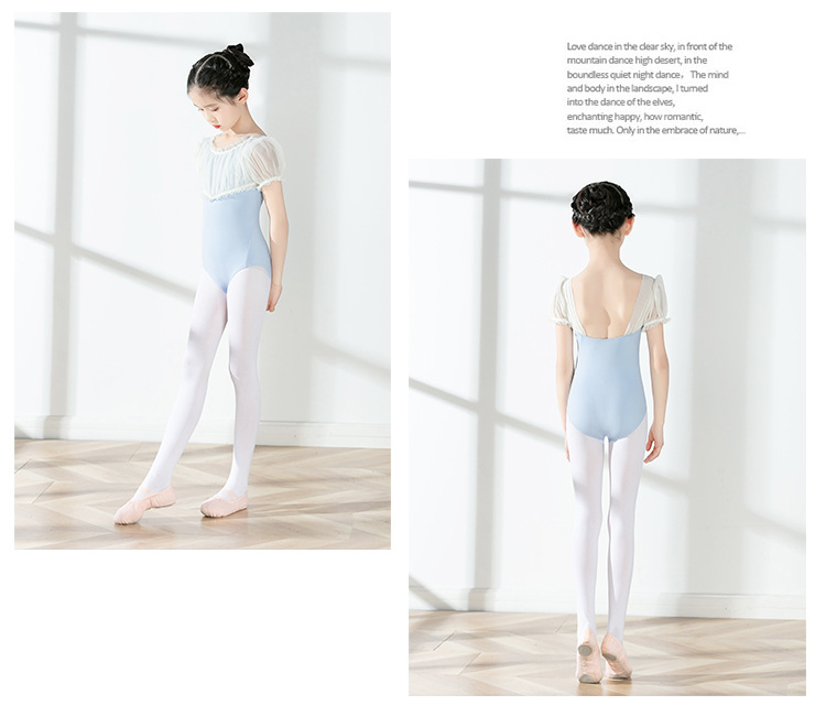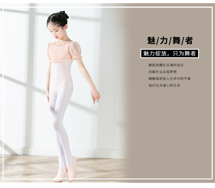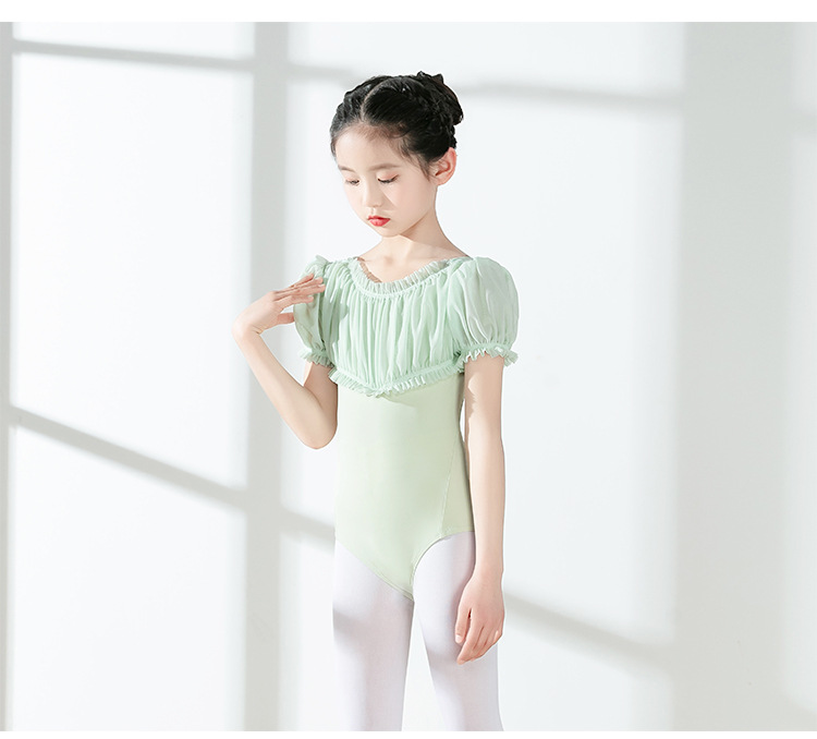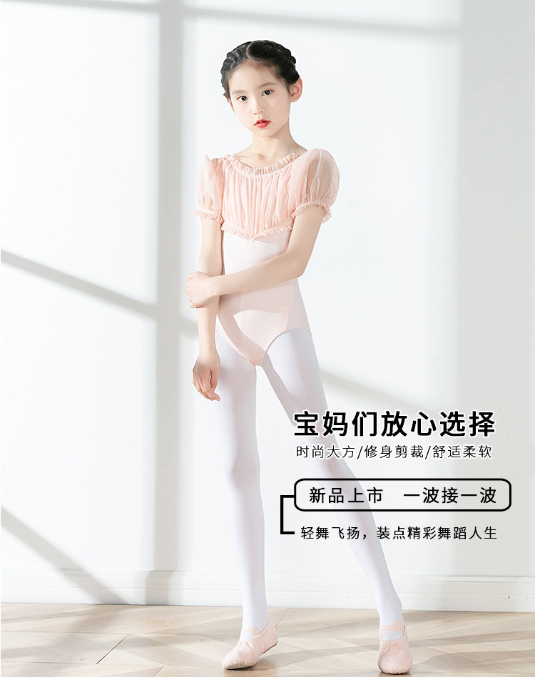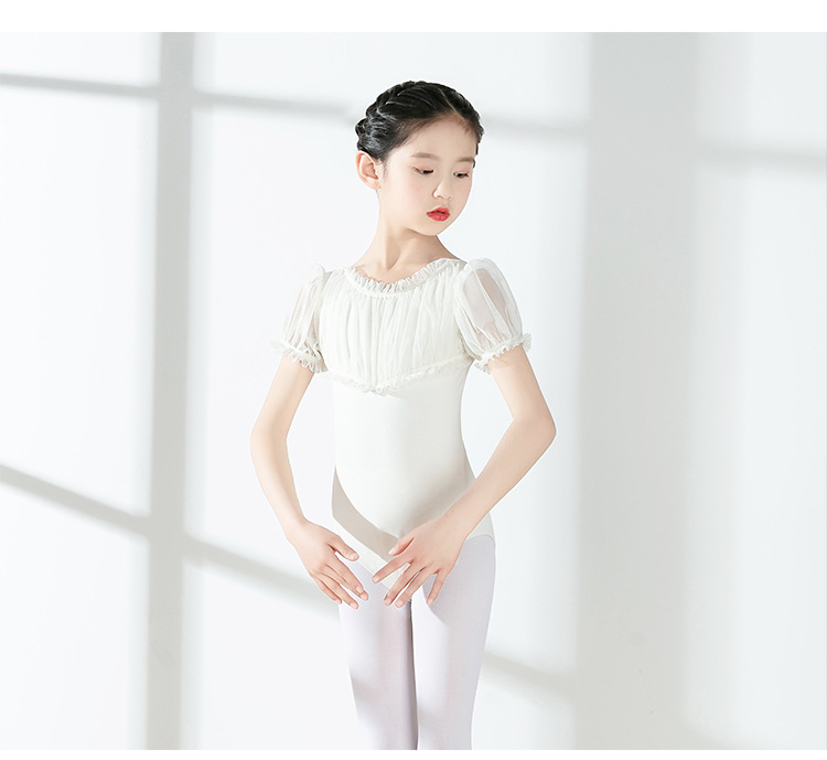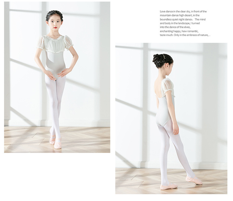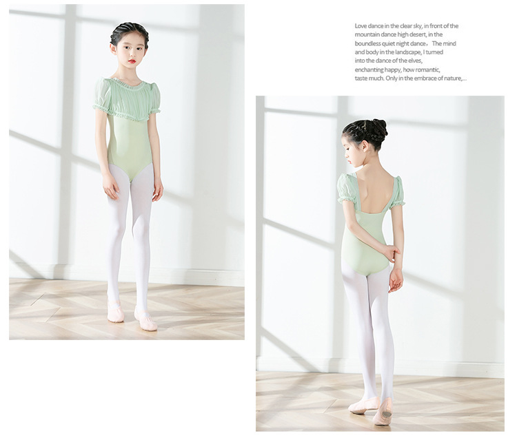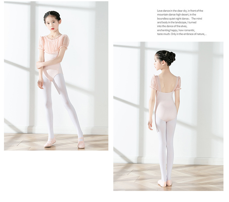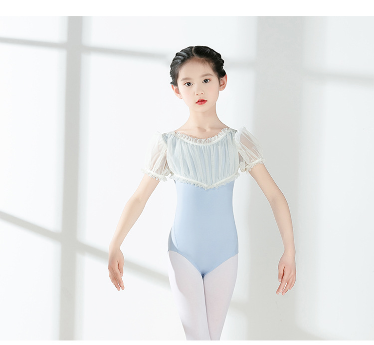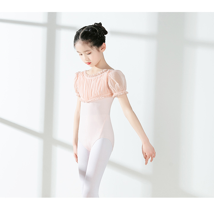 Pakaian dansa Cina anak perempuan, baju latihan putri balet lengan pendek musim panas