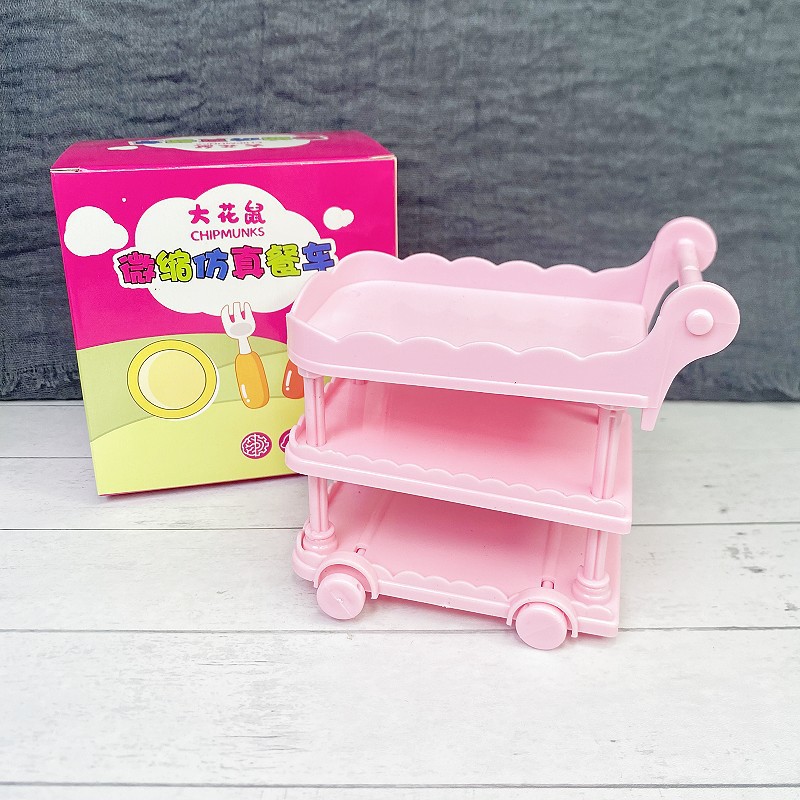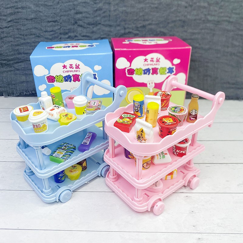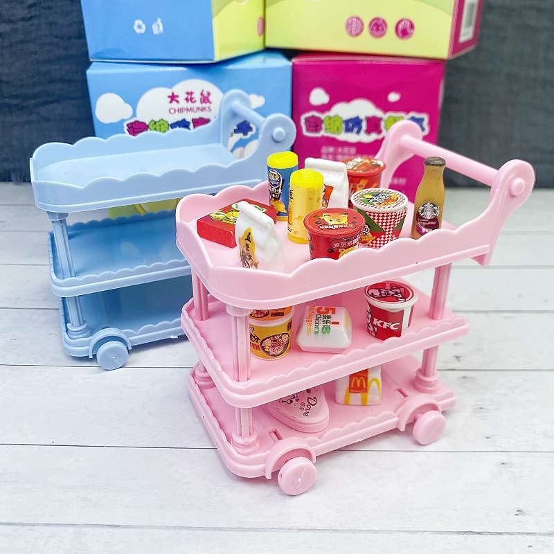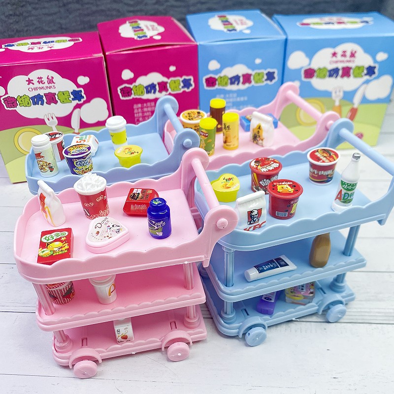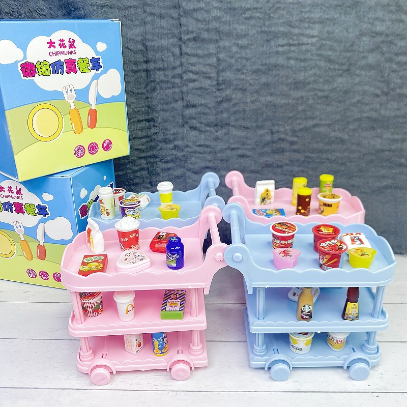 Miniatur dekorasi makanan dan bermain meja makan kecil troli mobil dapur rumah boneka makanan rumah bermain barang kecil aksesoris mainan
