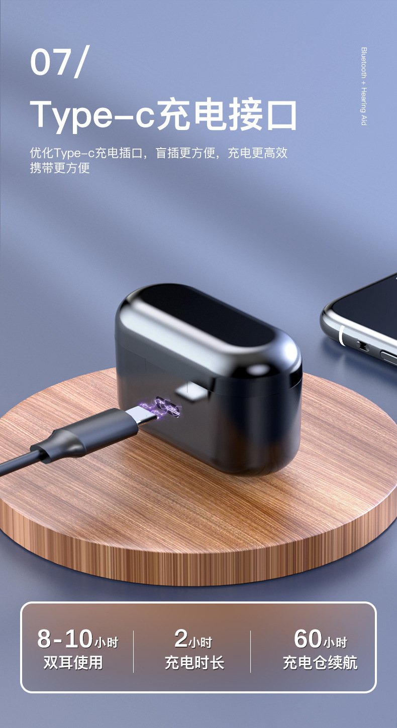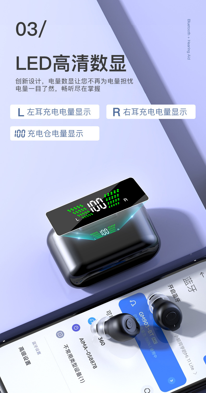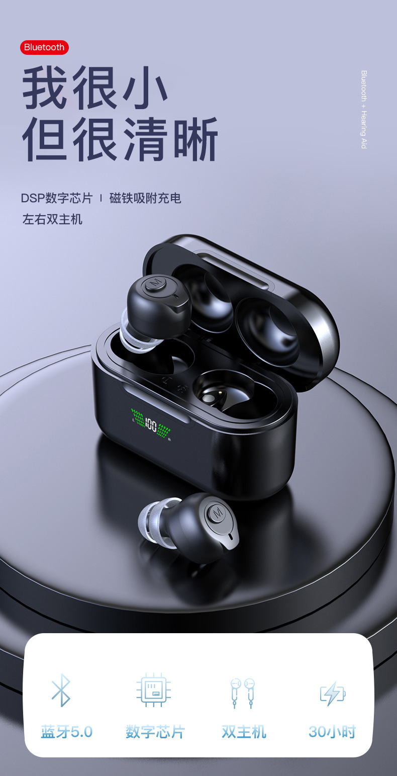 跨境新品数字助听器老人声音放大器可充电数显充配件hearing aid