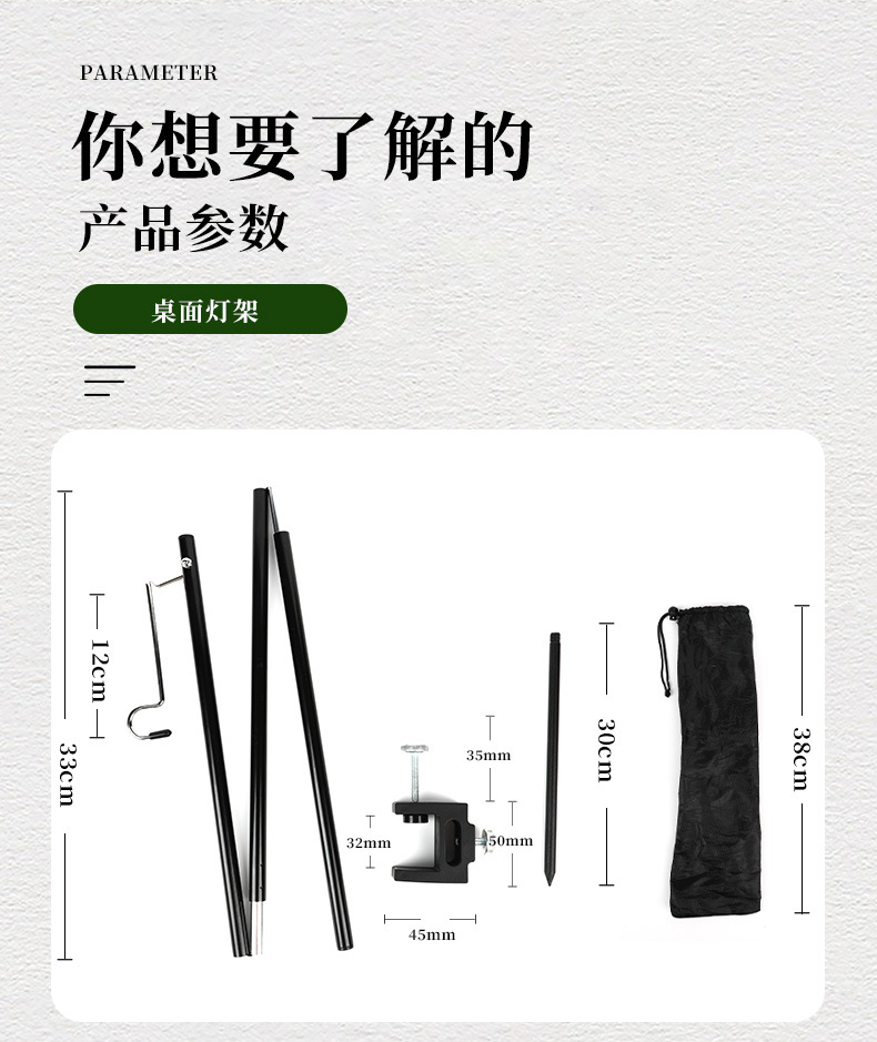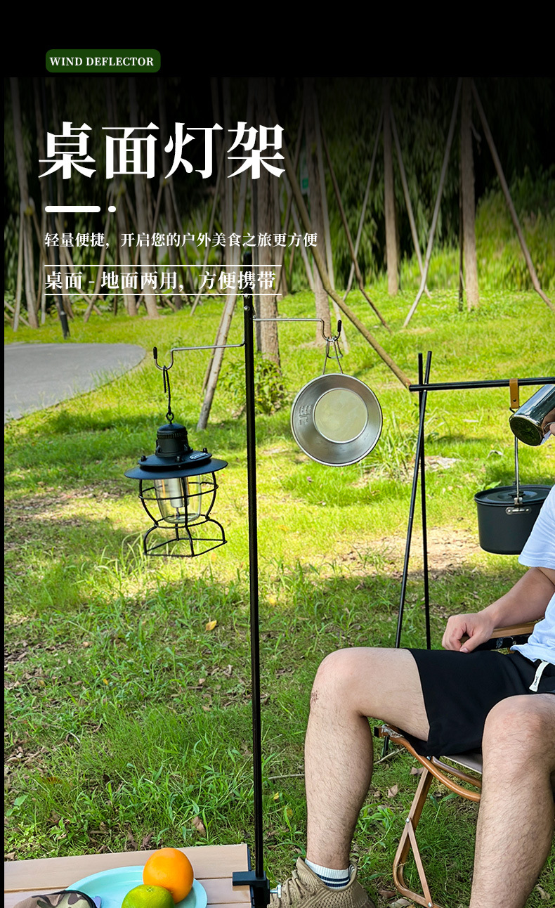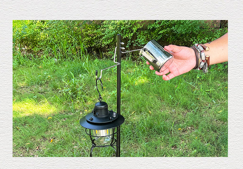 Lampu plug-in portabel berkemah, tiang lampu lipat aluminium Aloi luar ruangan, dudukan pasar malam, kait lampu Kemah