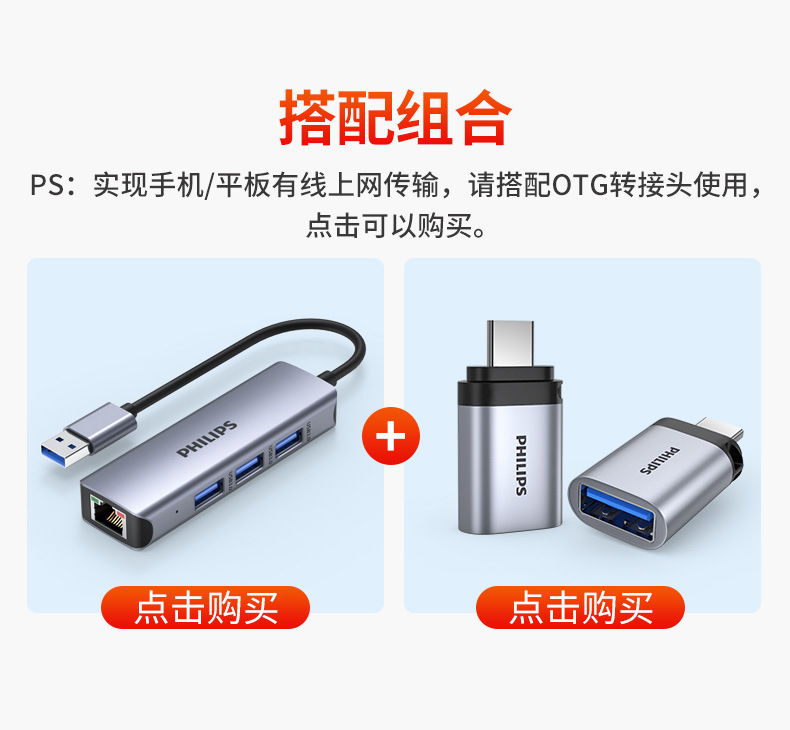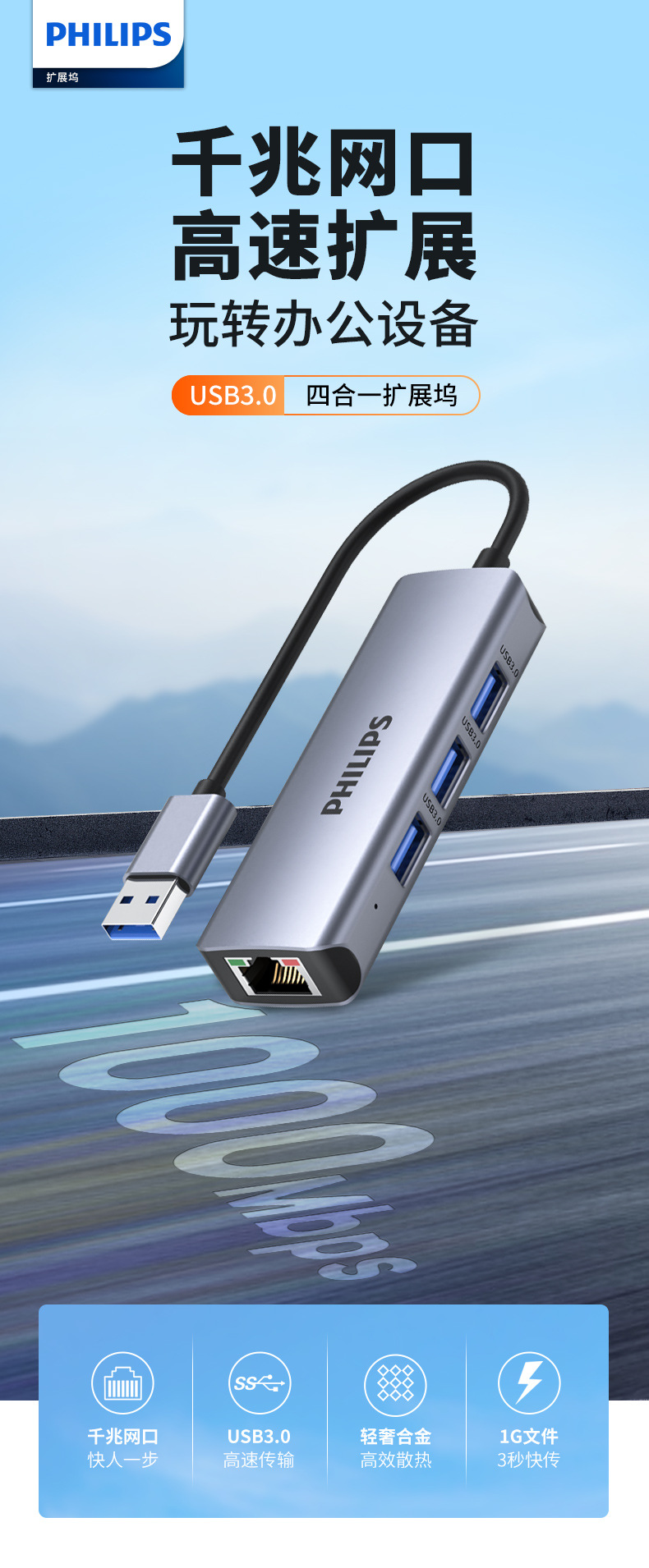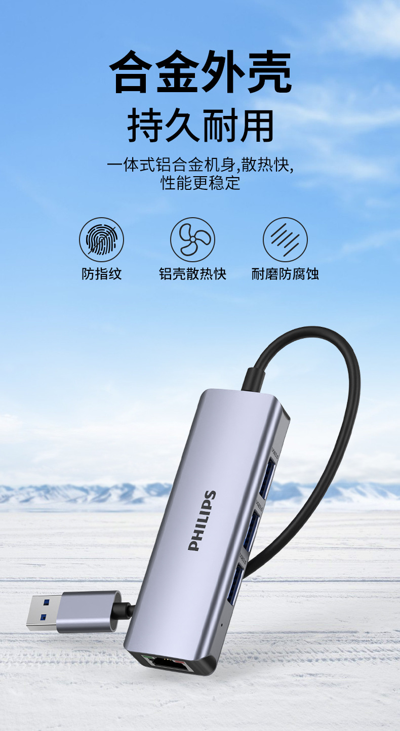 Philips USB3.0 ke port jaringan gigabit, stasiun Dok splitter kabel jaringan notebook konverter antarmuka RJ45