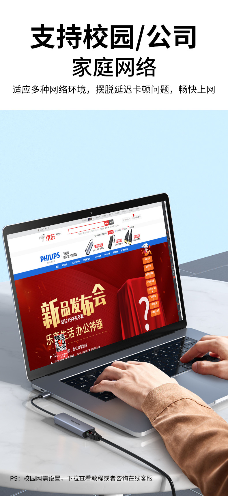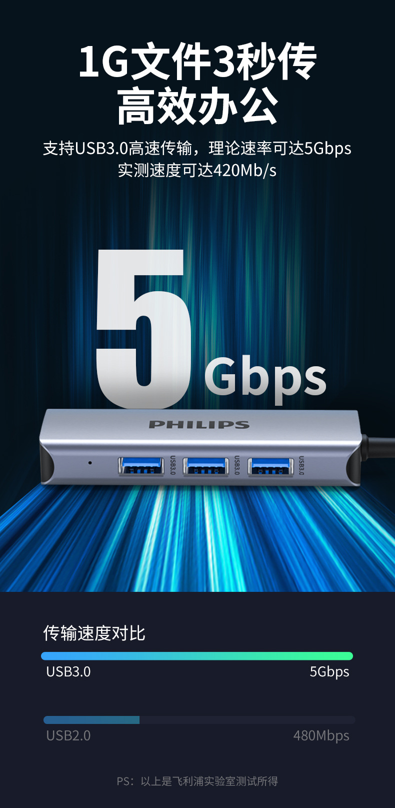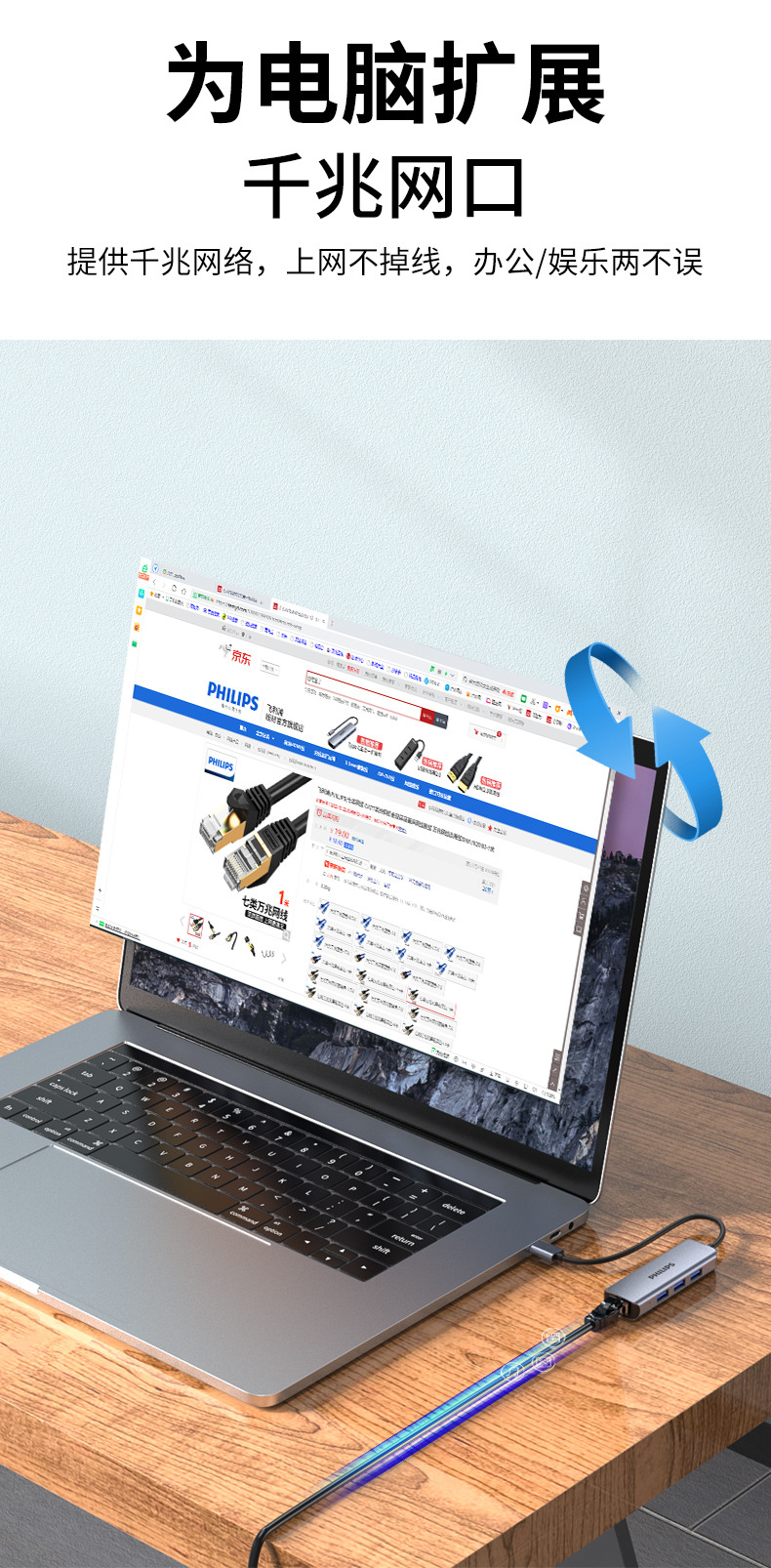 Philips USB3.0 ke port jaringan gigabit, stasiun Dok splitter kabel jaringan notebook konverter antarmuka RJ45