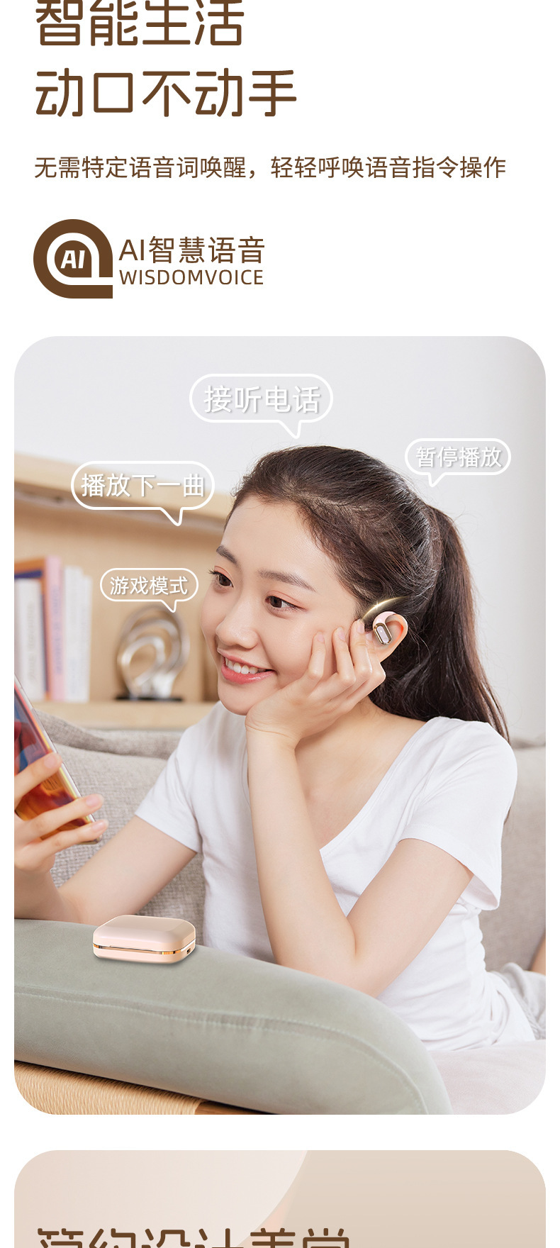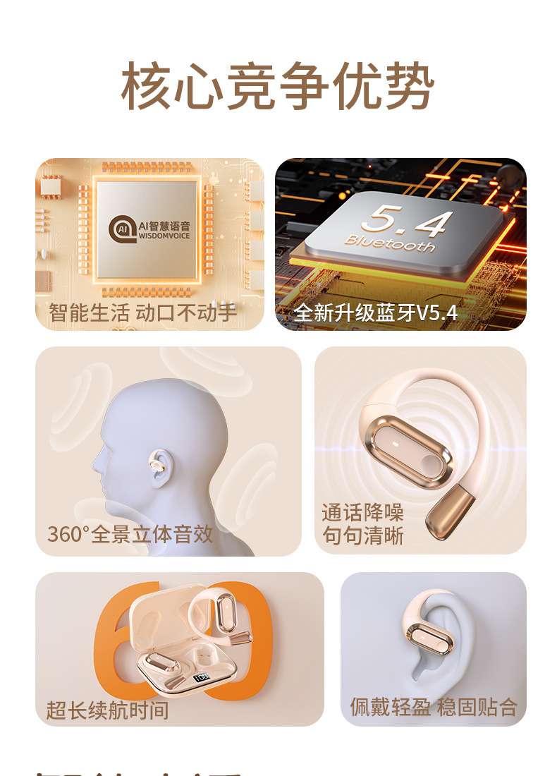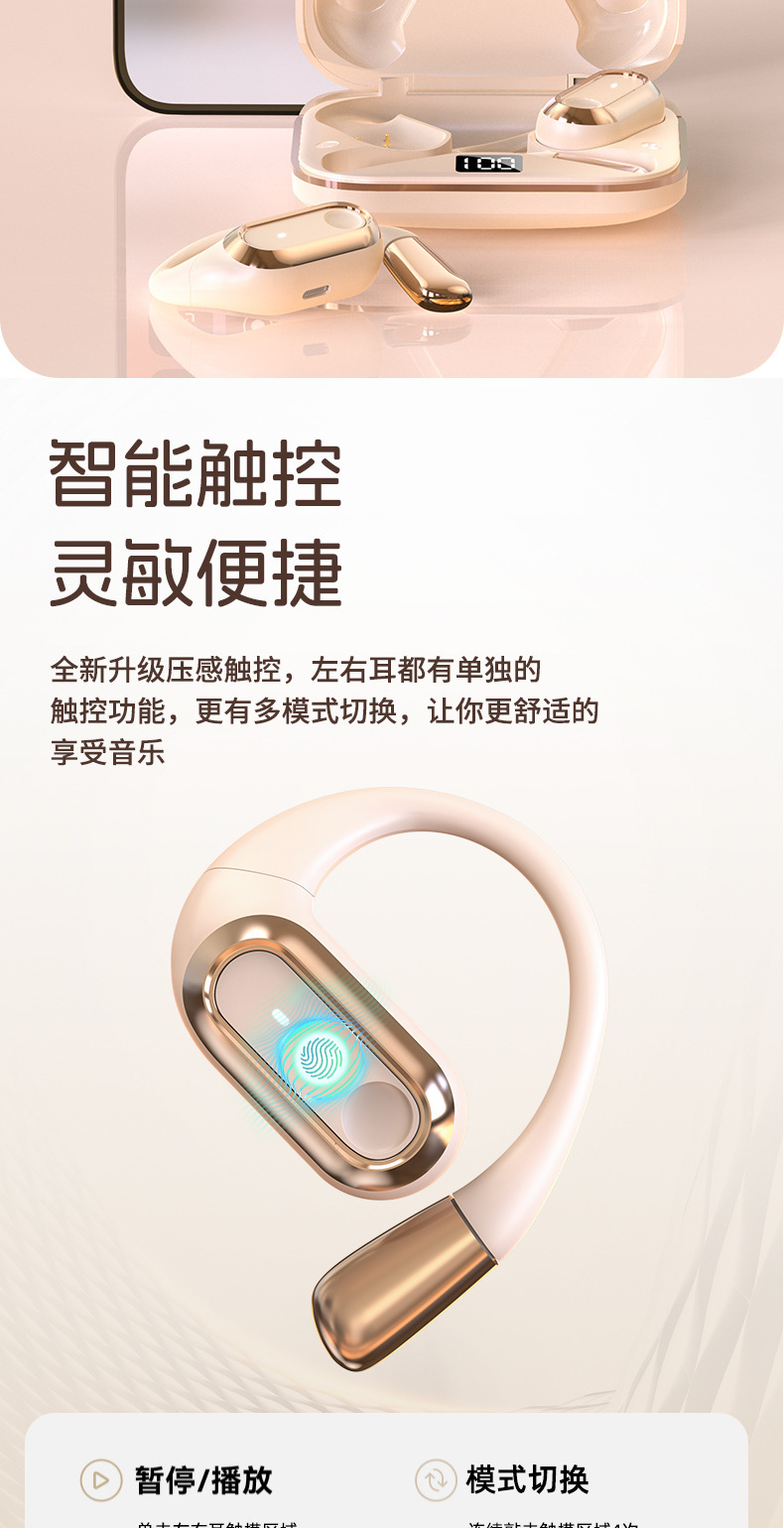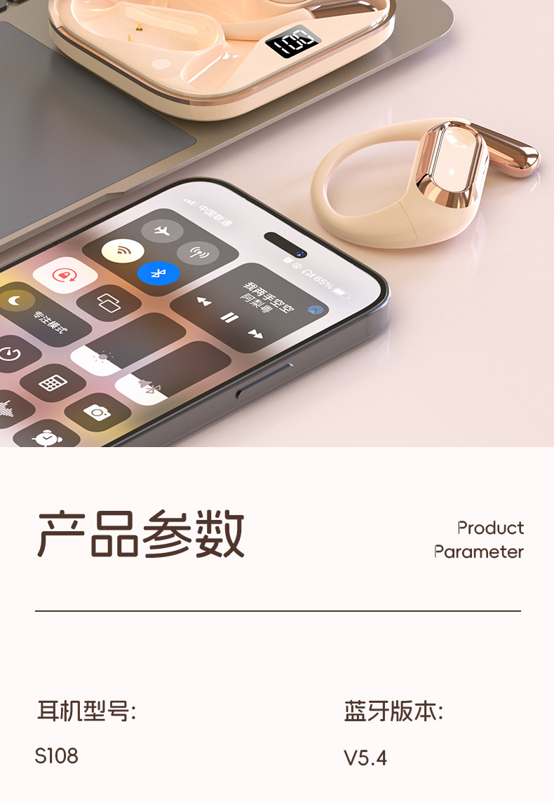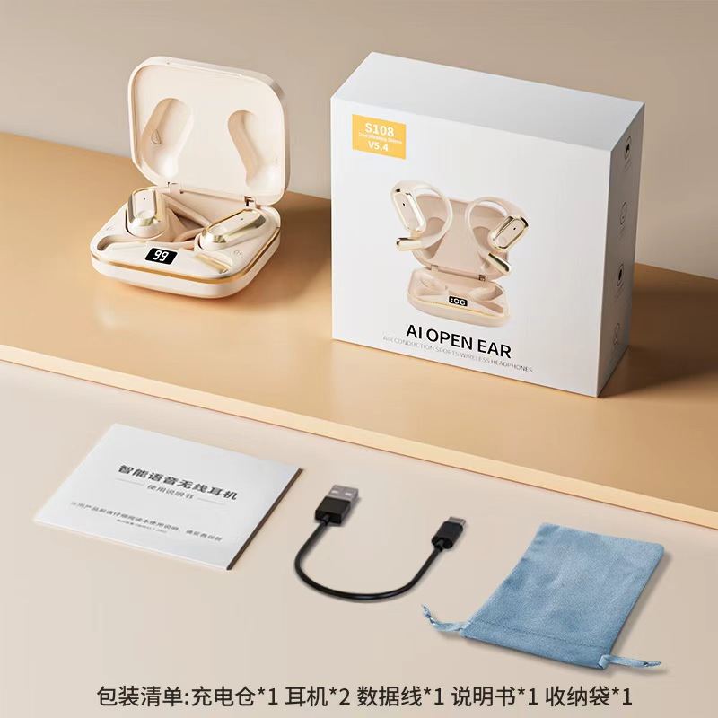Headphone Bluetooth 2024AI Voice OWS Ear-Hook S108, Daya Tahan Baterai Lama, Peredam Kebisingan, Dropshipping, Pabrik Sumber