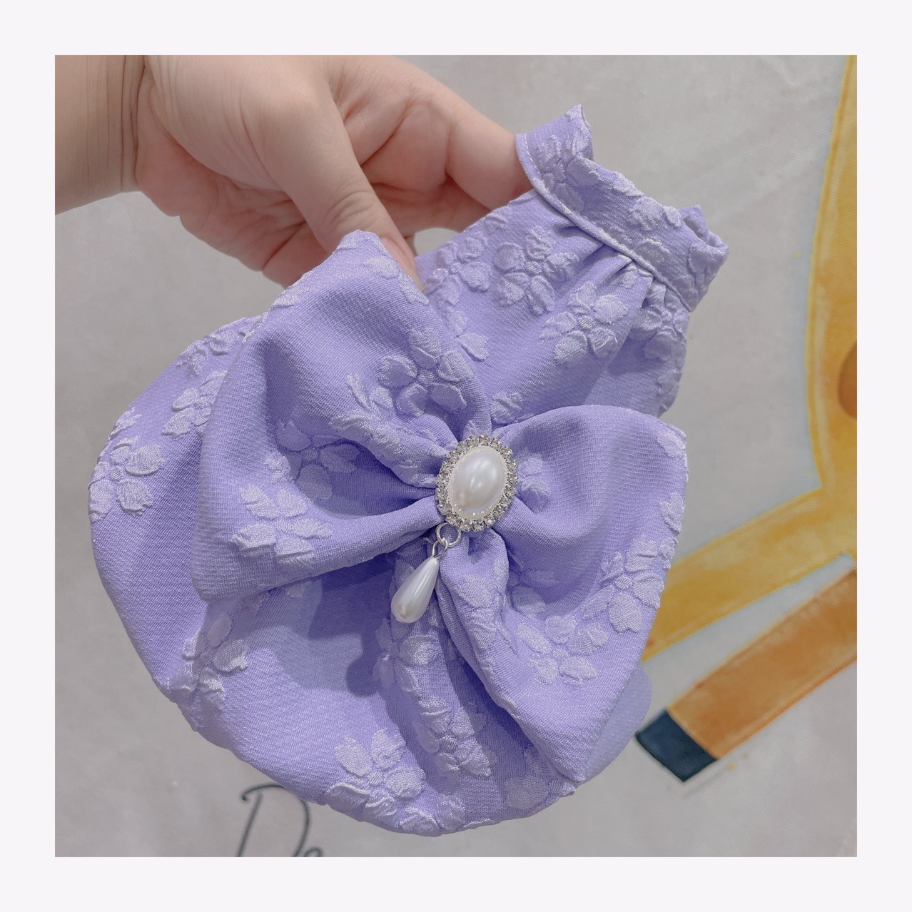 Gaun pakaian anjing selebriti, set pakaian dan aksesori rambut hewan peliharaan ultra-kecil, rok mutiara pita besar ungu musim panas