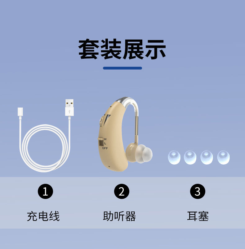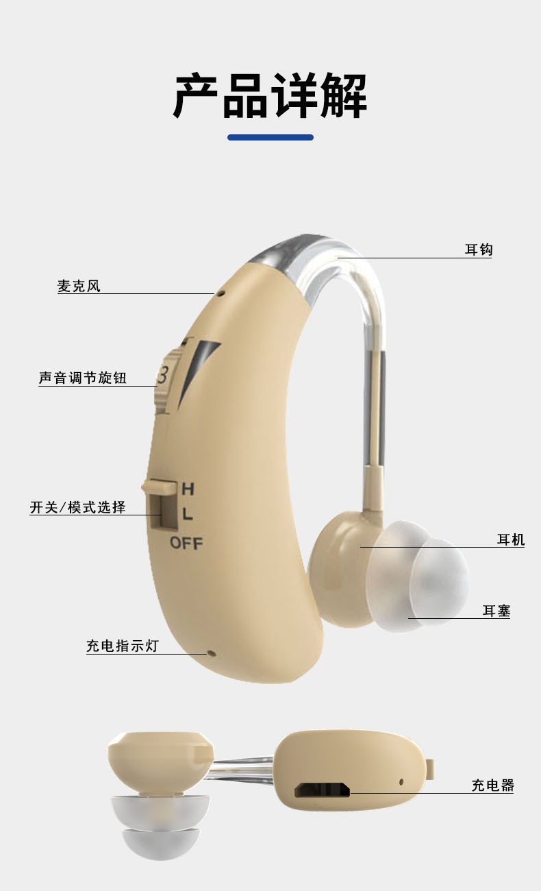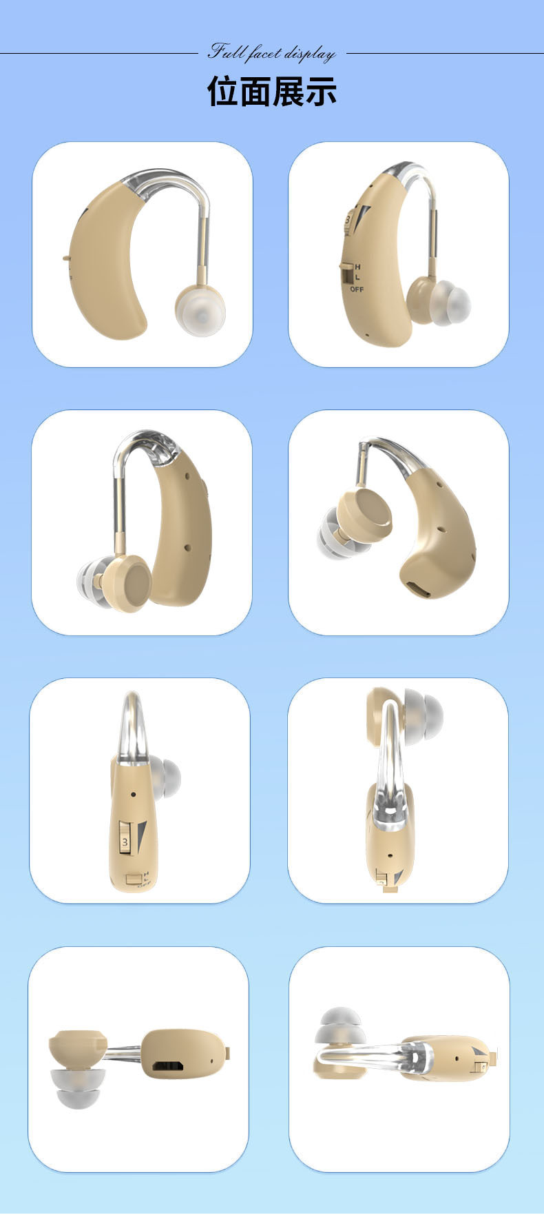 Alat bantu dengar di belakang telinga, penguat suara, alat bantu dengar gantung telinga yang dapat diisi ulang untuk lansia.