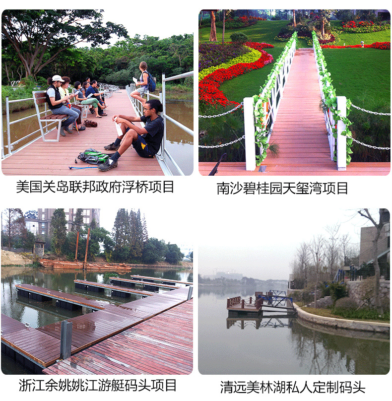 特殊铝合金型材制成的铝金结构浮桥的主要特点是经久耐用,功能多样、典雅高贵。