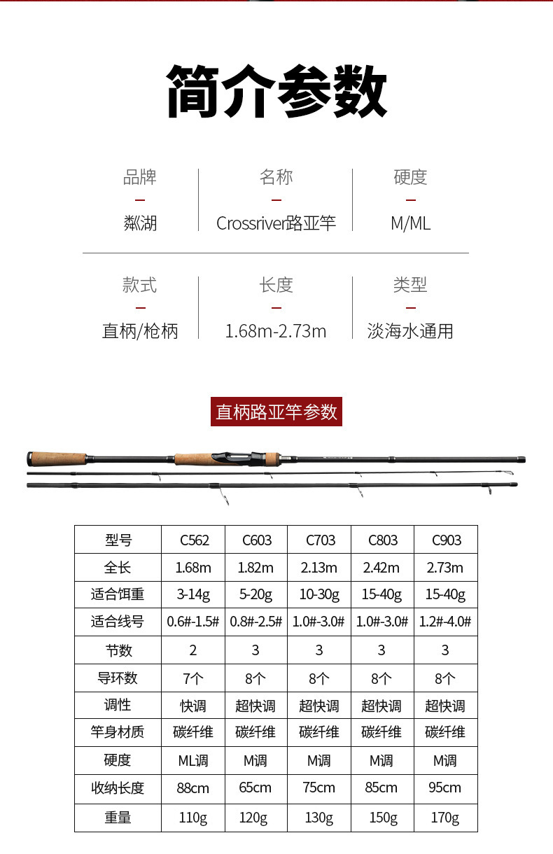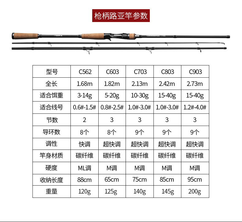 Tongkat pancing Luya, danau tiga bagian, tongkat pancing pegangan lurus karbon M/ML, tongkat pancing Luya jarak jauh dapat ditarik