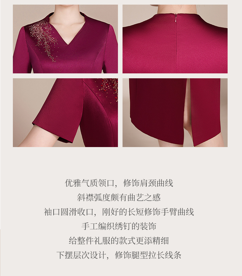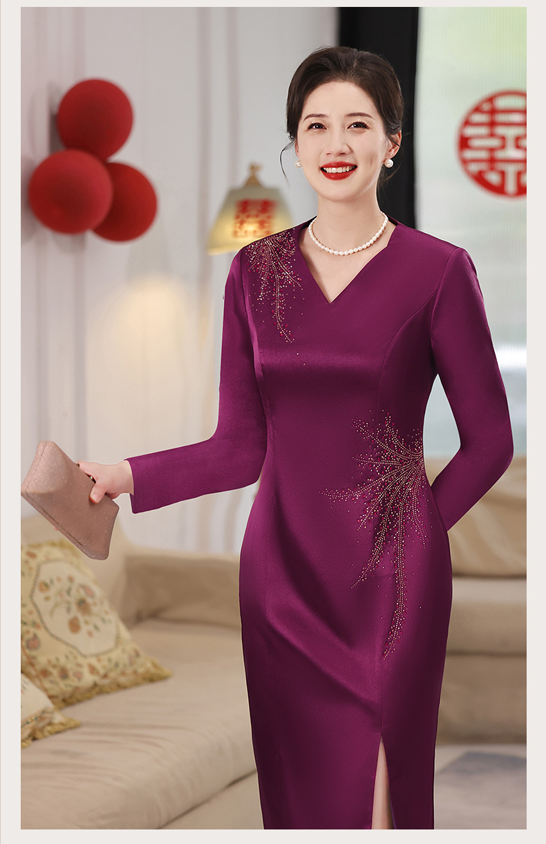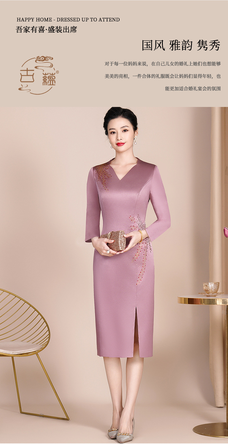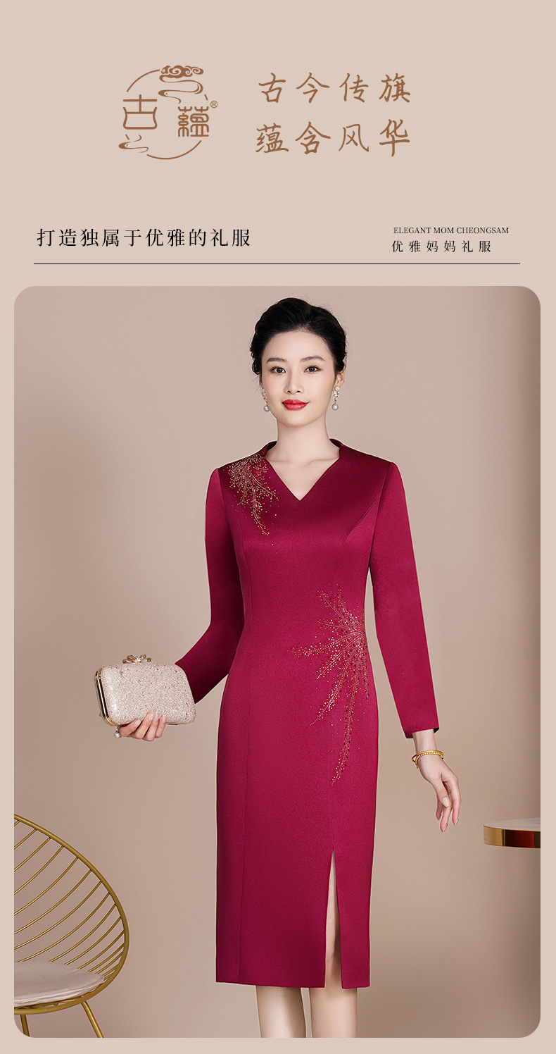 Guyun gaun malam bergaya Tiongkok, gaun cheongsam ditingkatkan untuk ibu bahagia baru pesta pernikahan perjamuan bahagia ibu dalam roti hukum