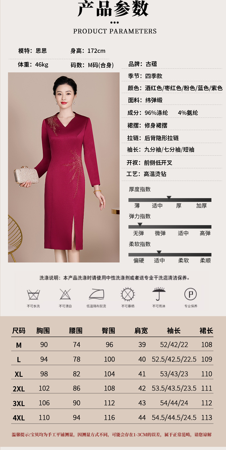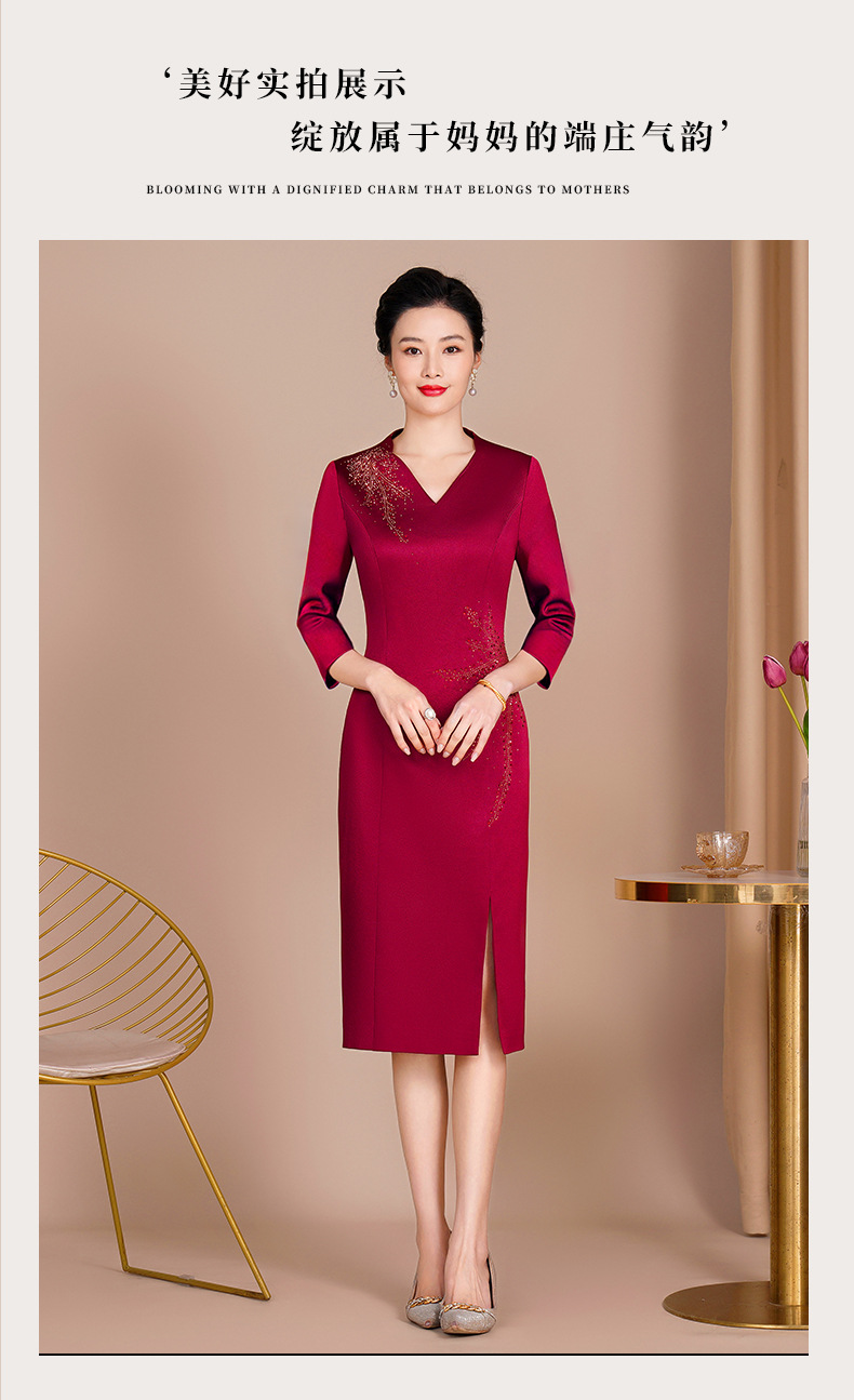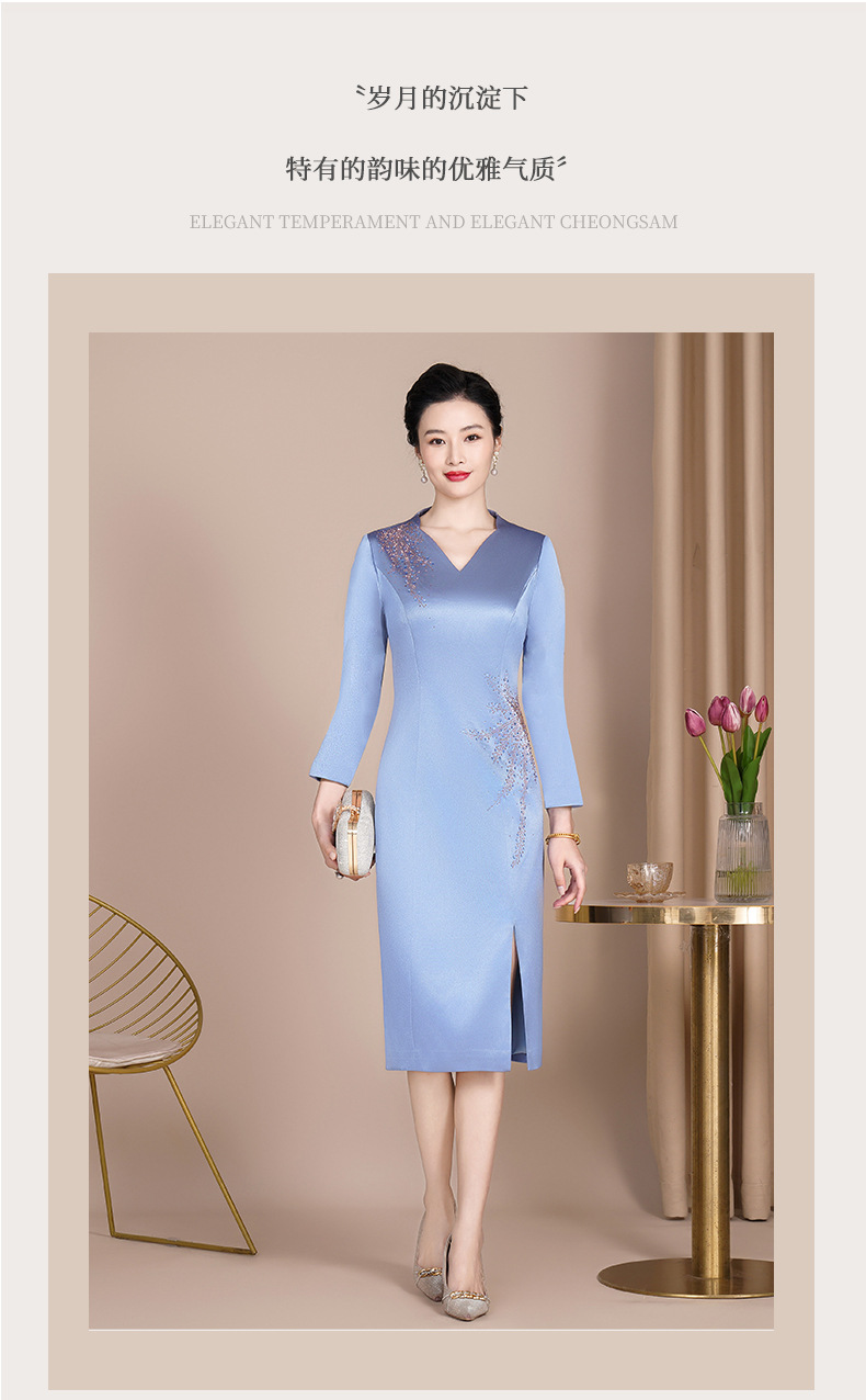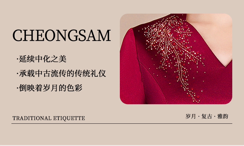 Guyun gaun malam bergaya Tiongkok, gaun cheongsam ditingkatkan untuk ibu bahagia baru pesta pernikahan perjamuan bahagia ibu dalam roti hukum
