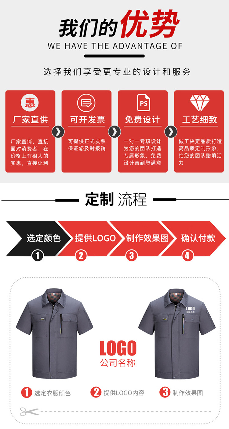 Pakaian kerja lengan pendek, musim panas bengkel perbaikan lokasi konstruksi pabrik reparasi otomatis departemen teknik pakaian pelindung tenaga kerja tipis kustomisasi