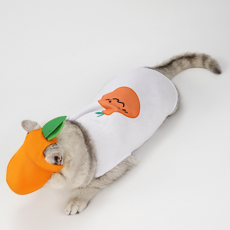 Setelan topi hewan peliharaan baru pakaian kucing oranye lucu rompi anjing kecil produsen topi anjing