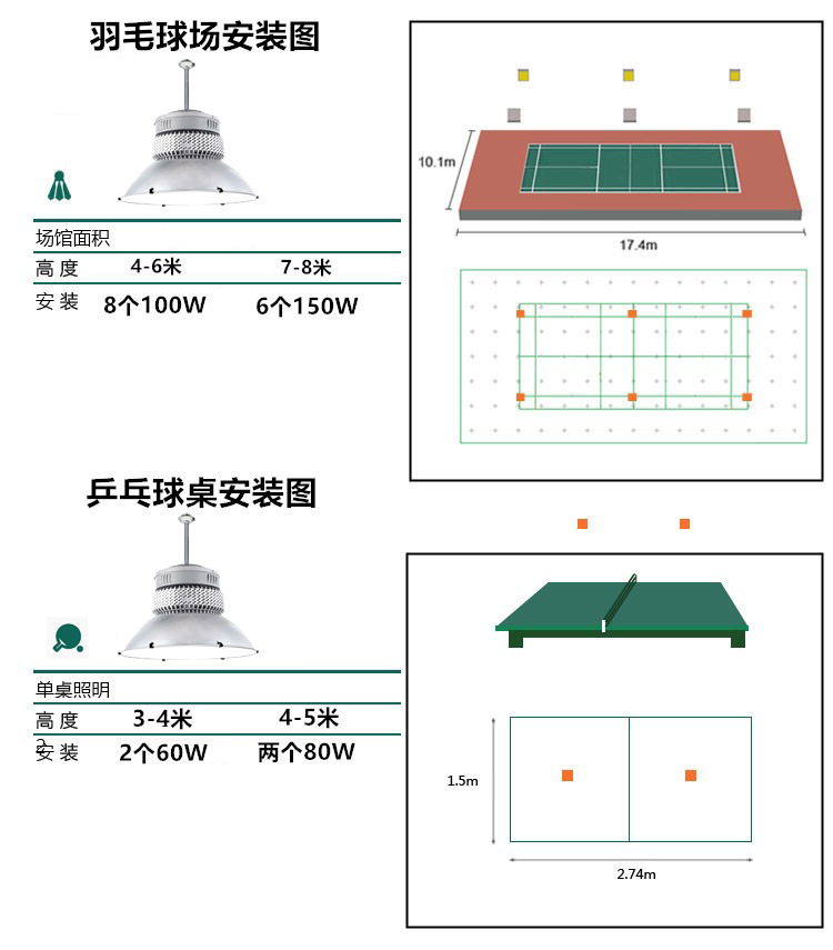 Lampu LED antisilau untuk lapangan basket, lampu badminton ruang tenis meja, lampu led khusus dalam ruangan