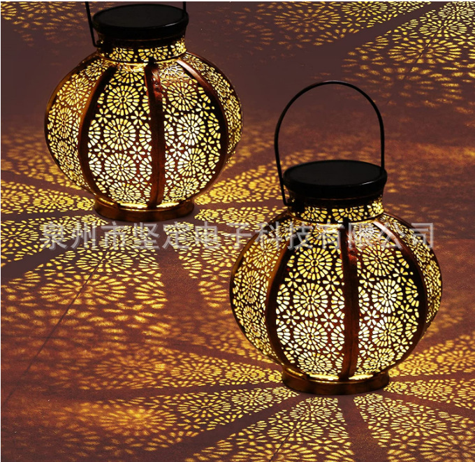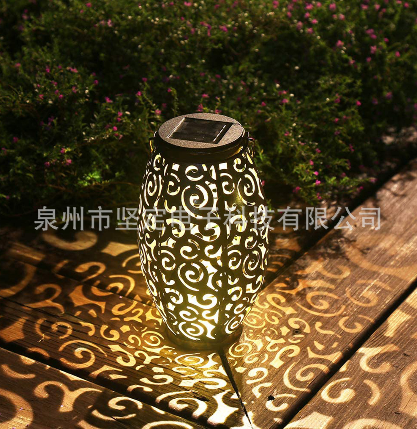 太阳能镂空灯手提铁艺灯笼户外草坪装饰投影景观灯太阳能庭院灯笼