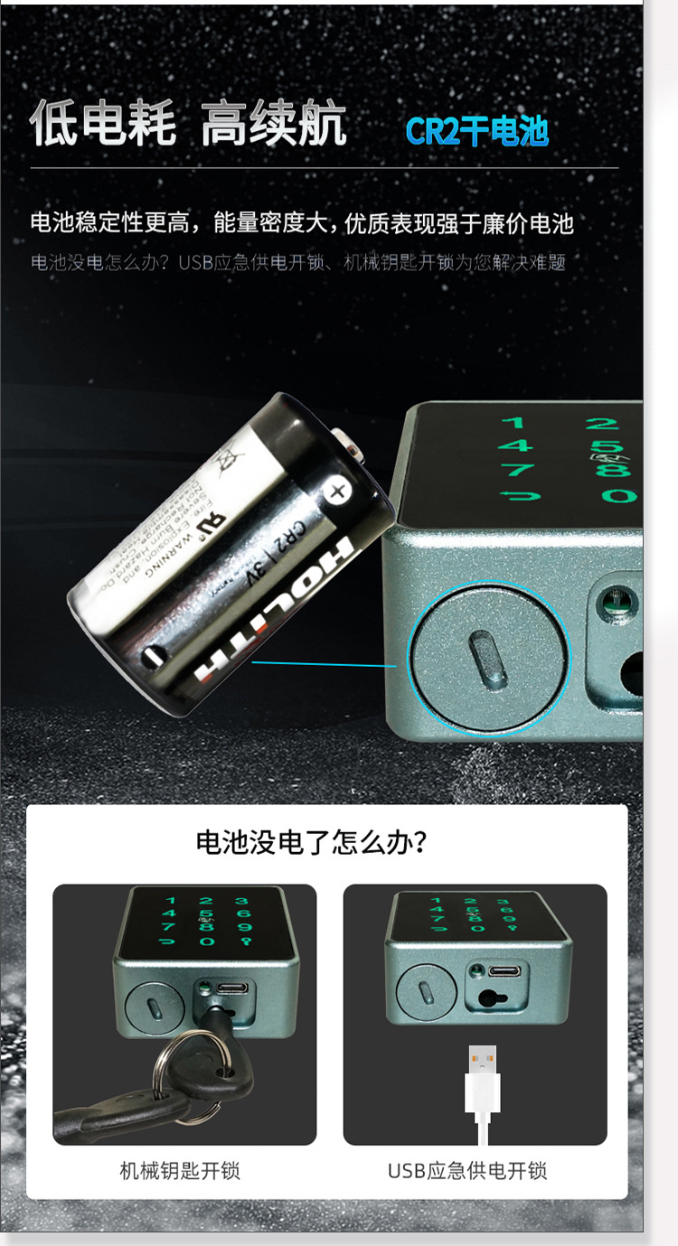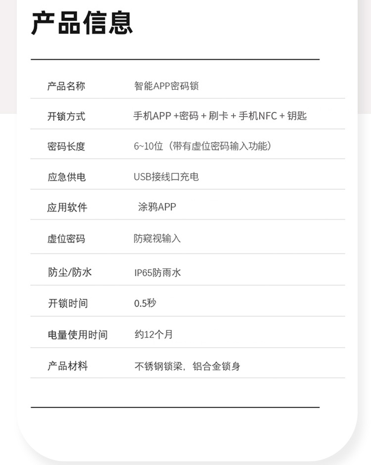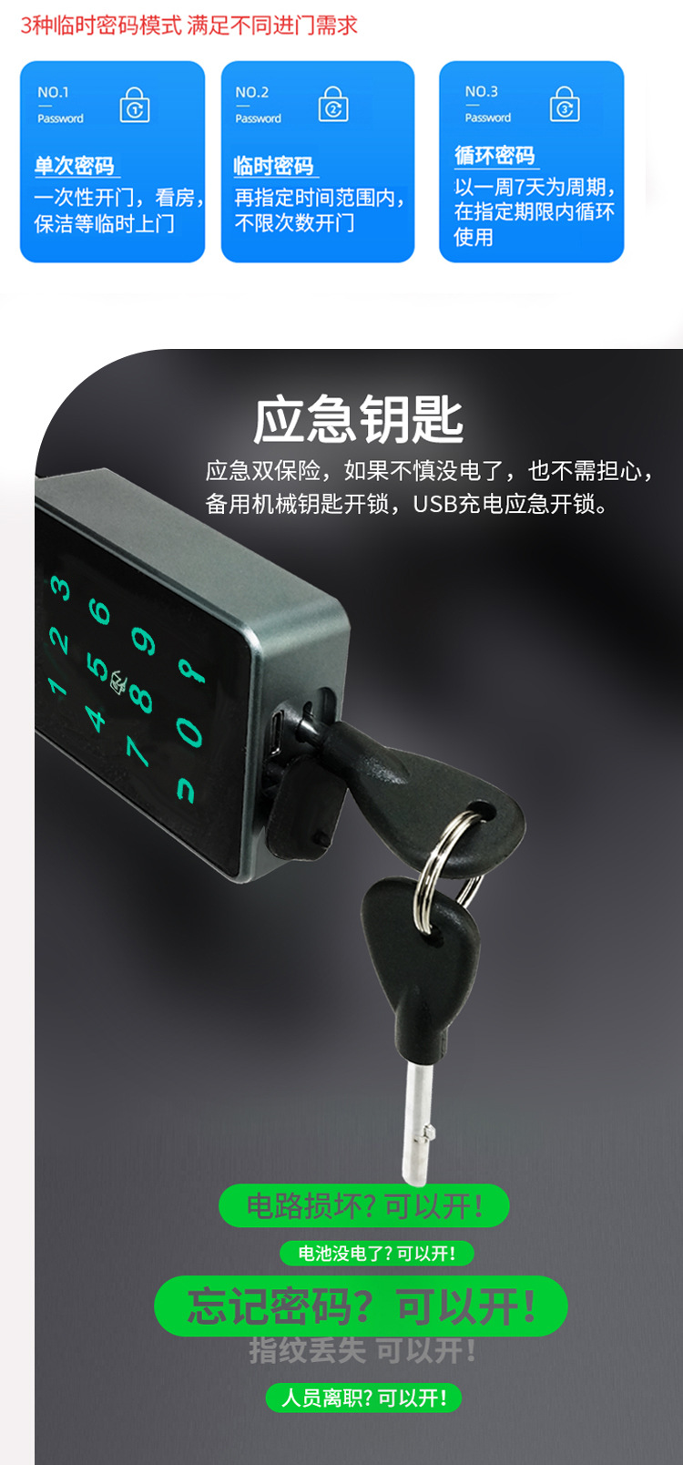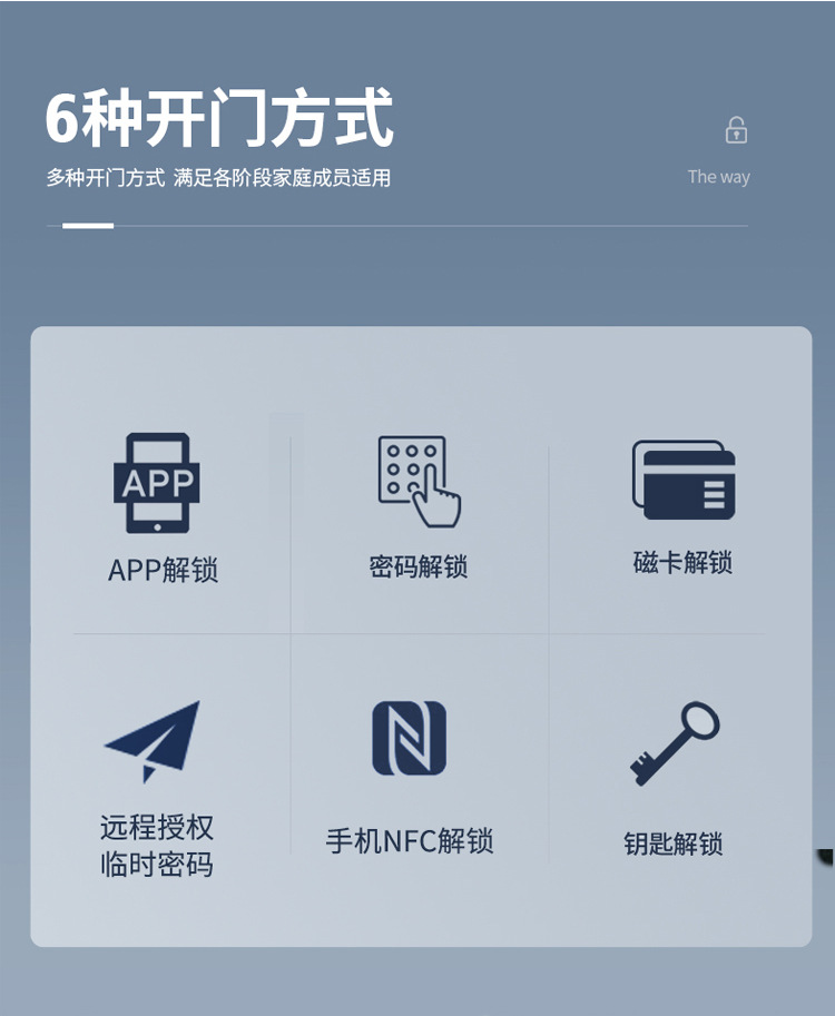 2:开锁方式:密码+刷卡+APP+钥匙+NFC