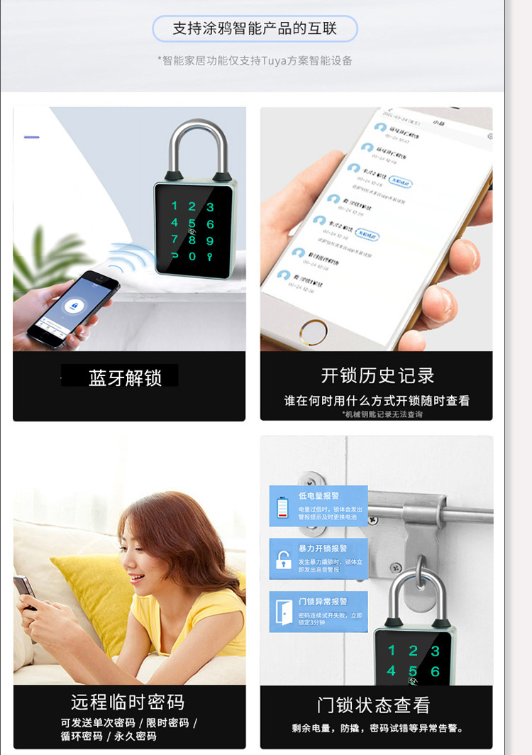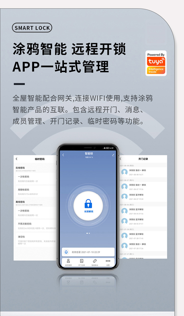 4:开锁方式:指纹+密码+刷卡+APP+钥匙+NFC