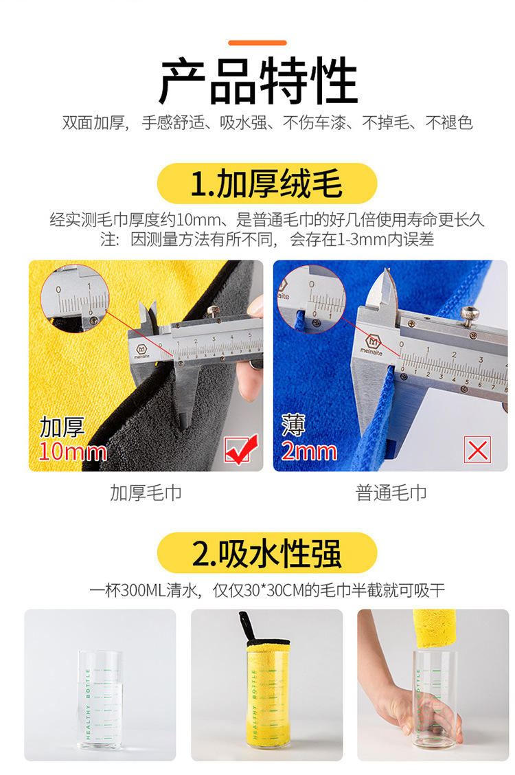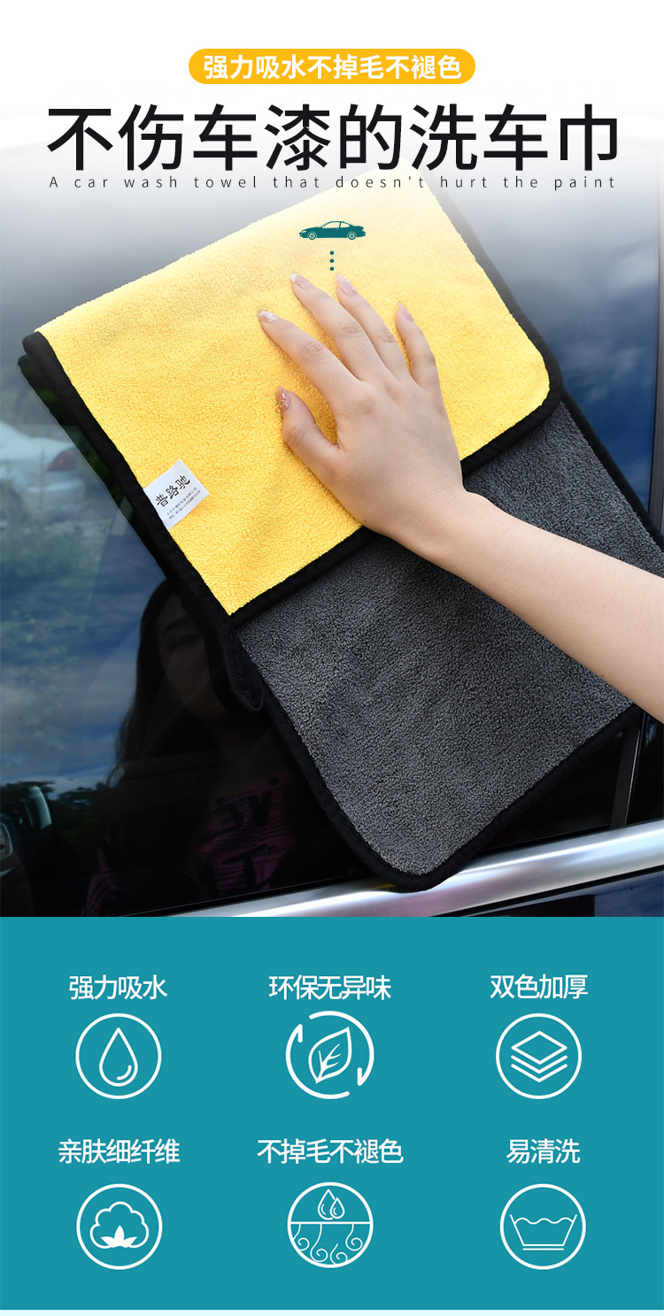 Handuk cuci mobil, peralatan cuci mobil dua warna dekontaminasi penyerap bulu karang tebal