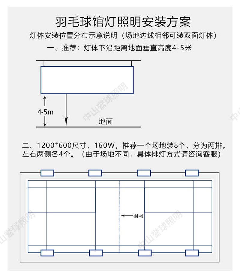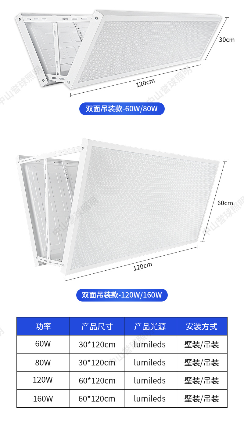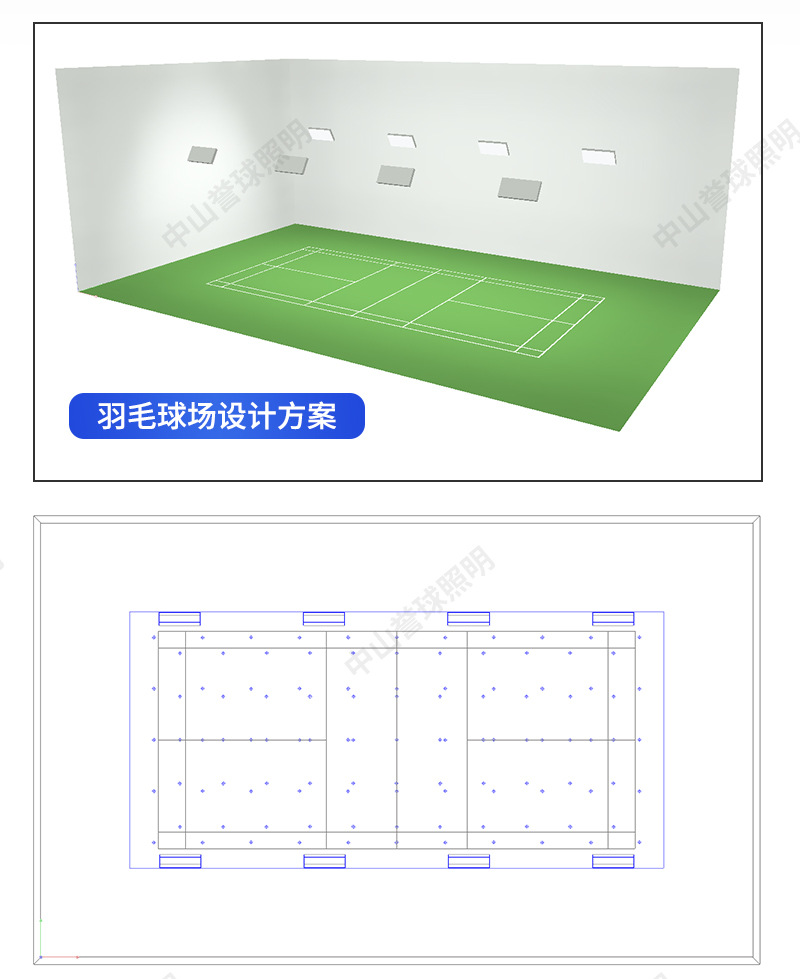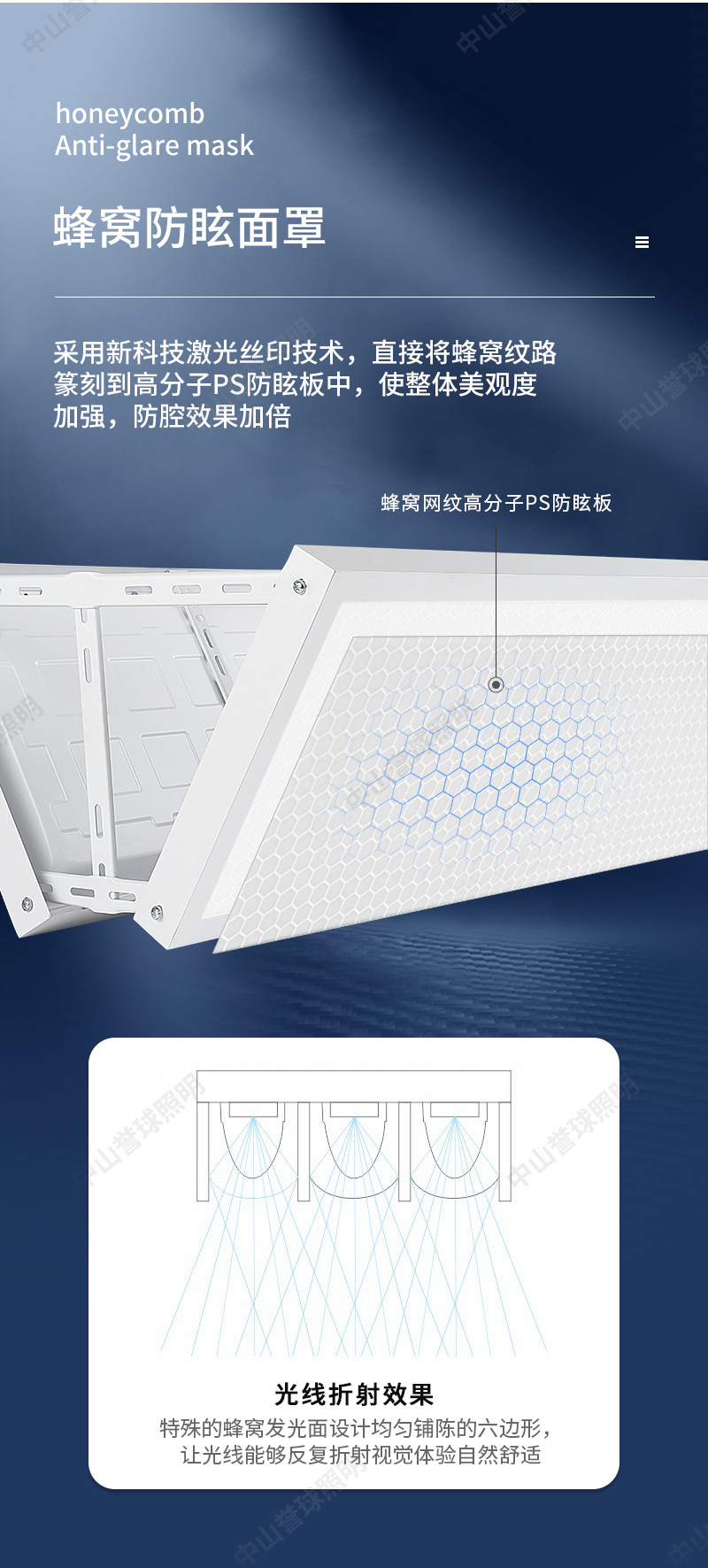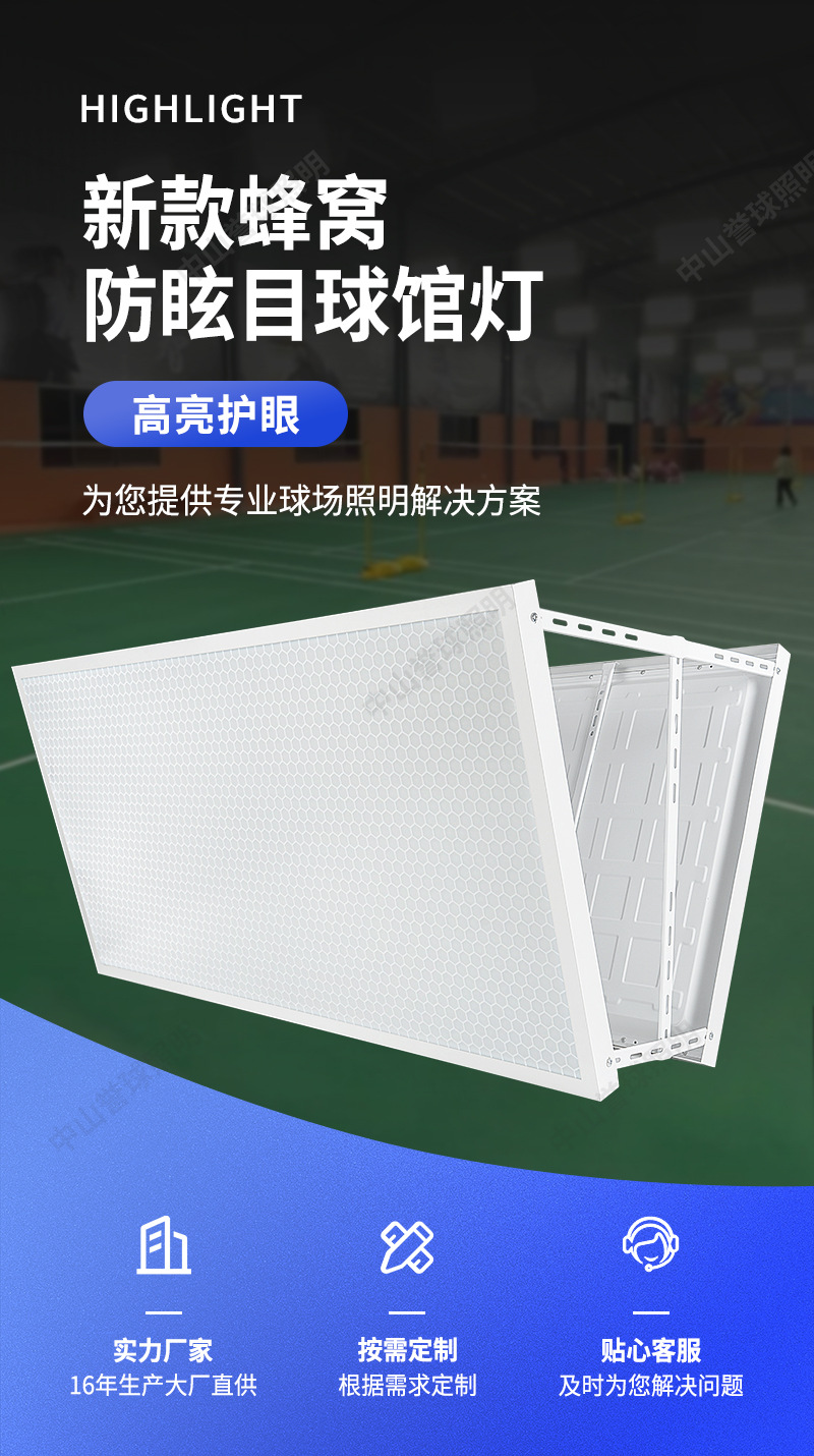 蜂窝防眩目羽毛球馆灯 LED单双面无影专用灯室内篮球场体育馆照明