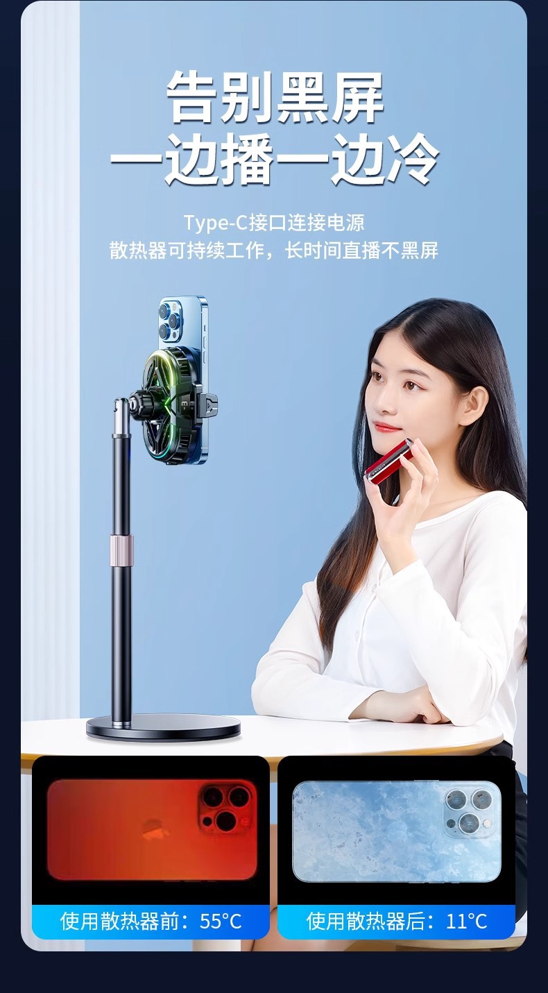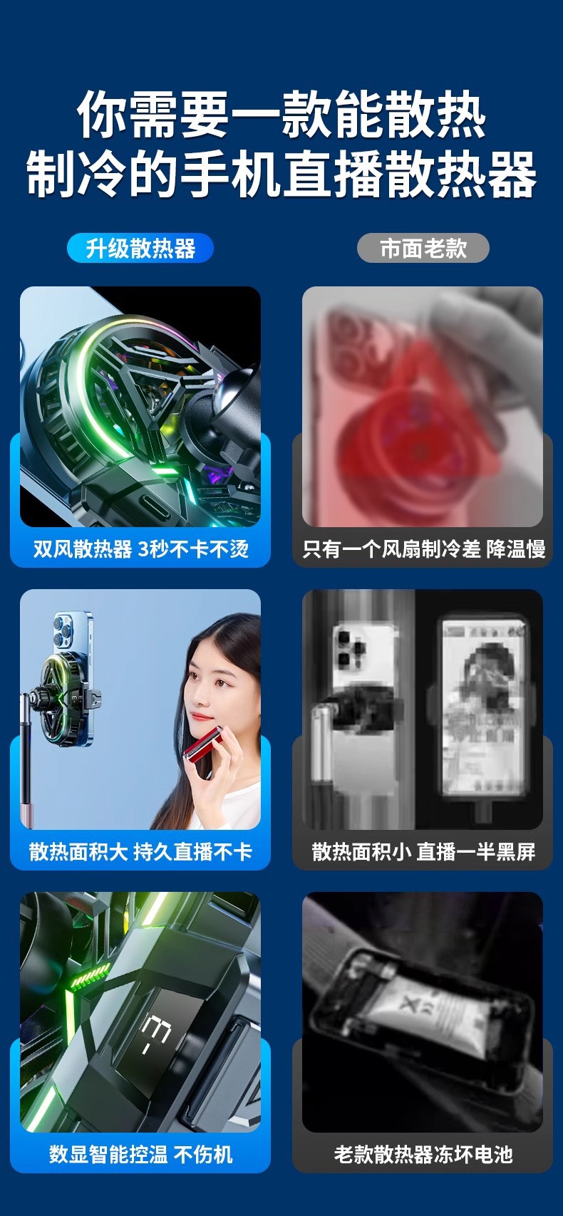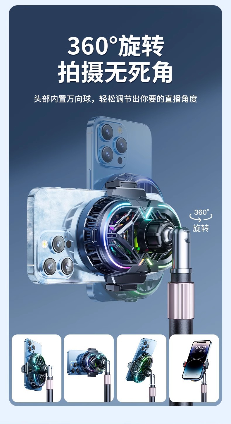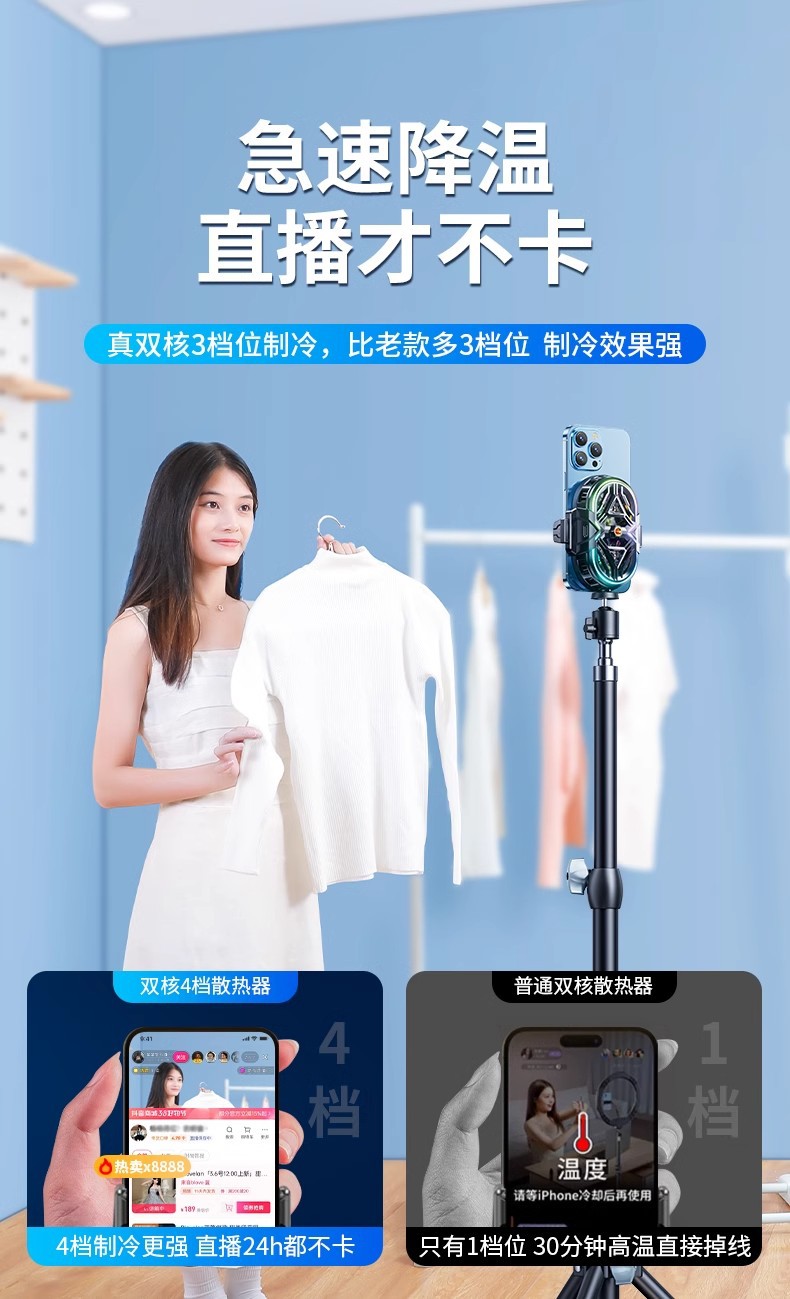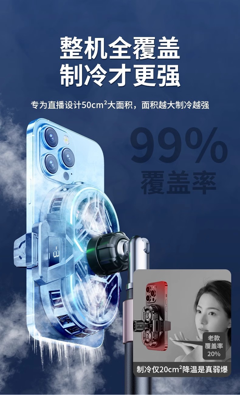 Khusus untuk siaran langsung, braket terintegrasi artefak pendingin radiator ponsel Sangat Tenang klip belakang dengan angin