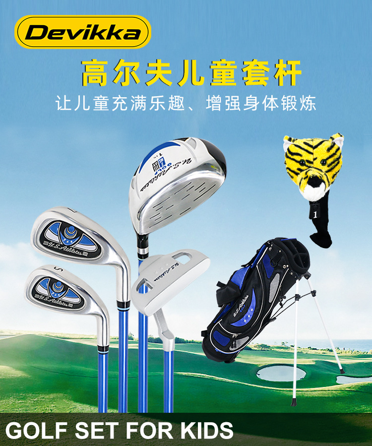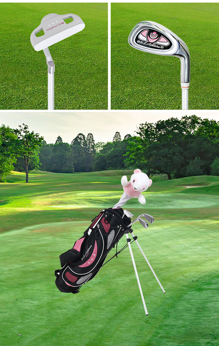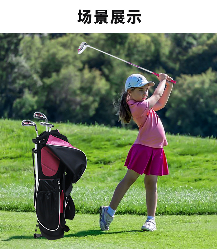 Tas golf pemula anak-anak, tongkat latihan tongkat kayu No. 7, set bola kompetisi, tas golf pemula