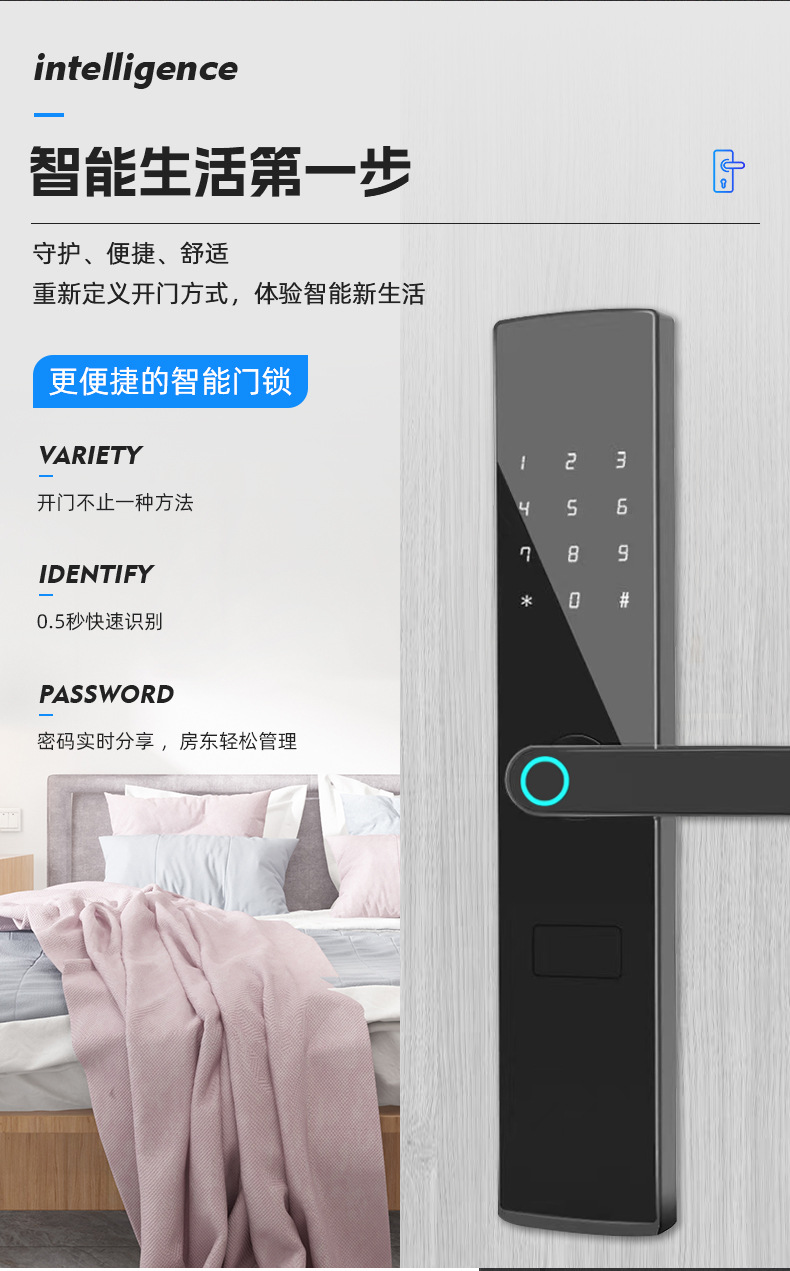 Produsen Lintas Batas Kunci Pintu Hotel Hotel Apartemen Kunci Sensor Sidik Jari Homestay Sewa Pintu Kayu Kunci Kartu IC Cerdas