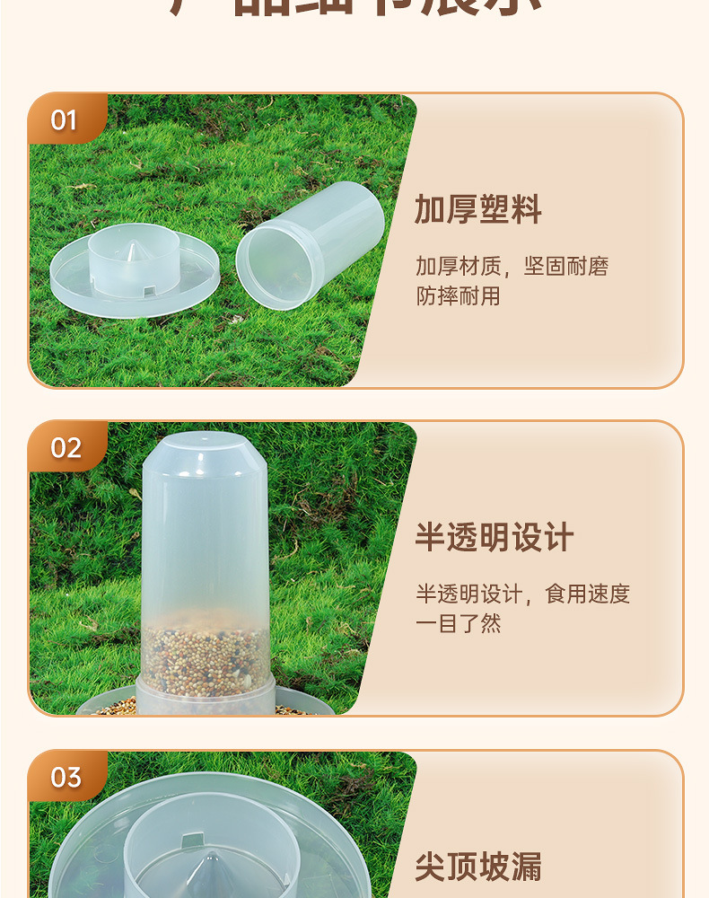 Kotak makanan puyuh, dispenser air, pengumpan otomatis, botol minum anak ayam dan puyuh, kandang burung beo, perlengkapan burung