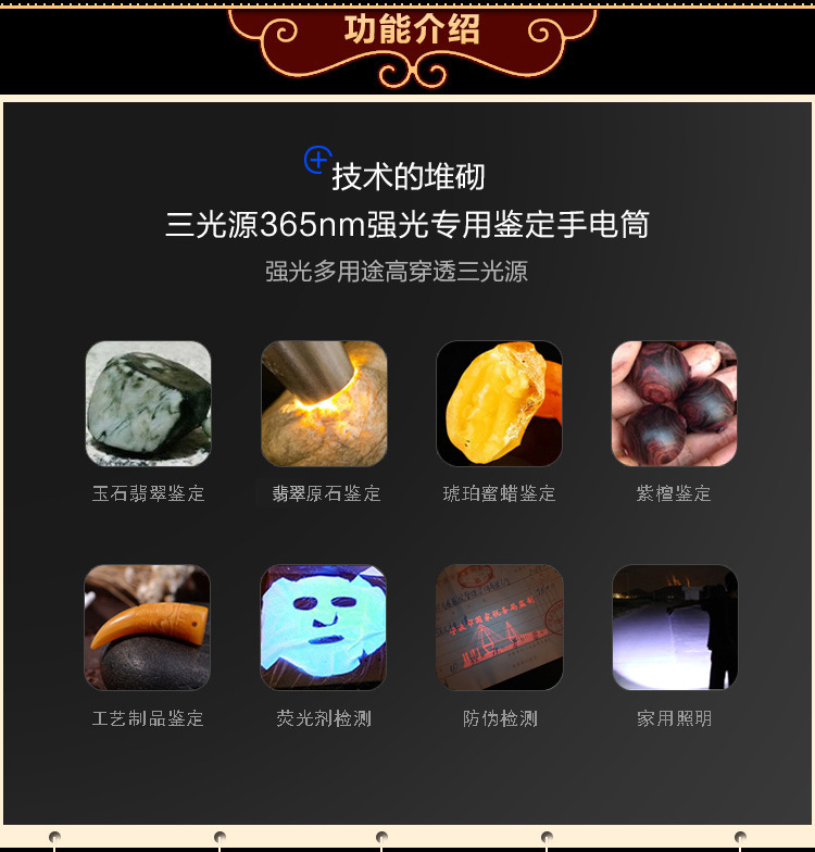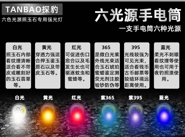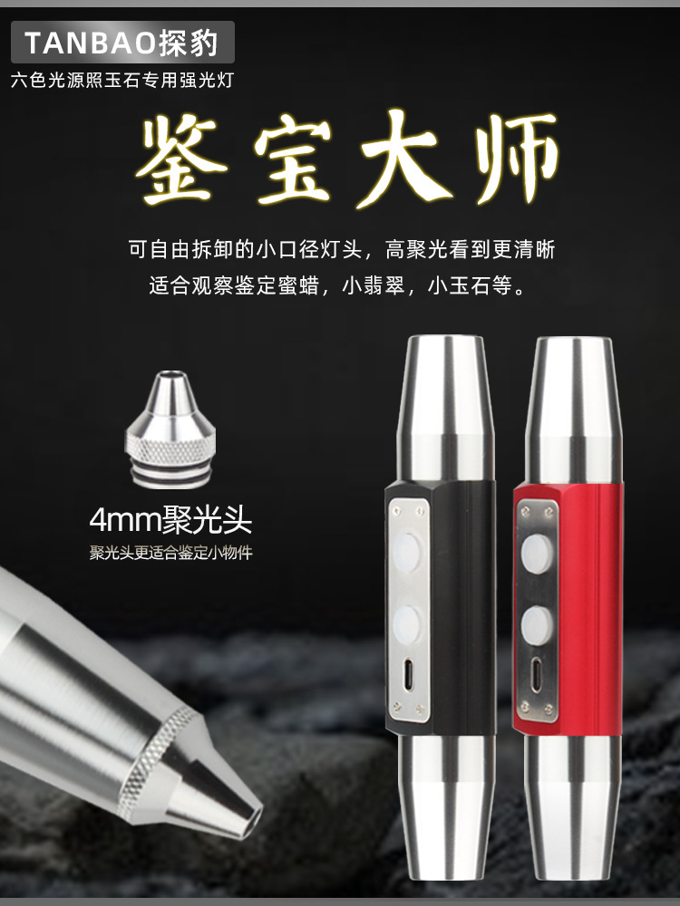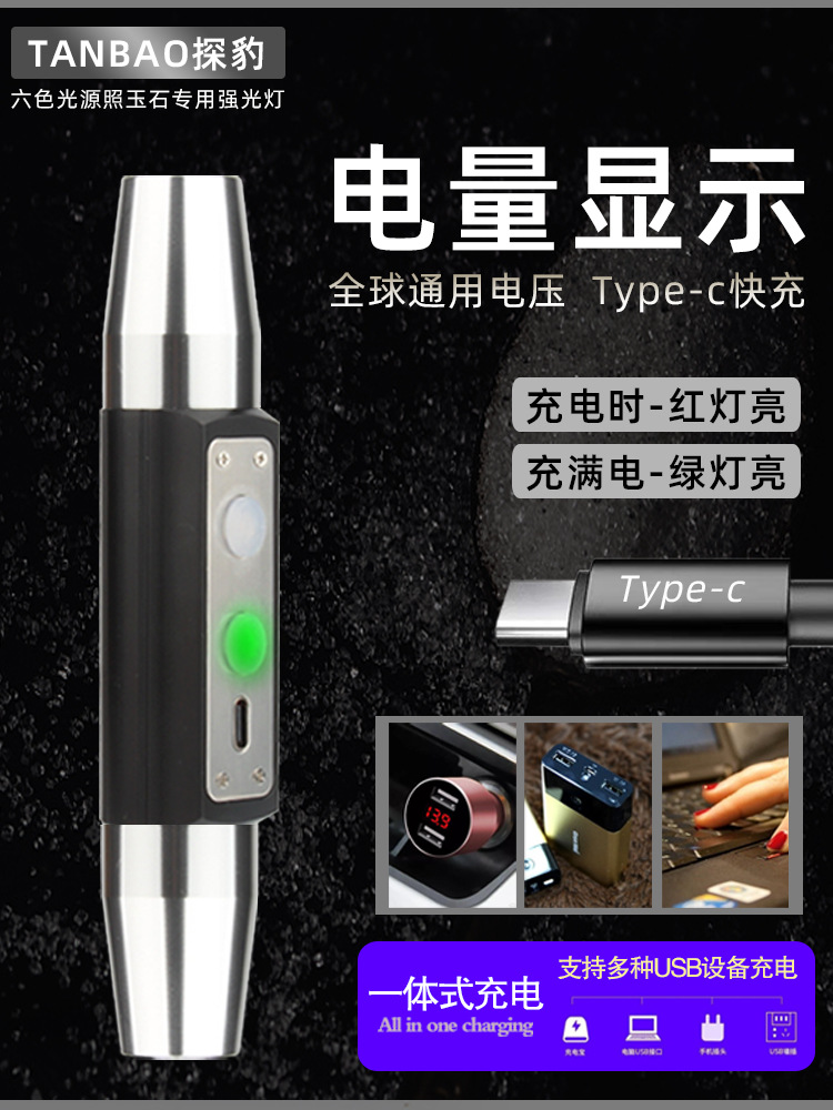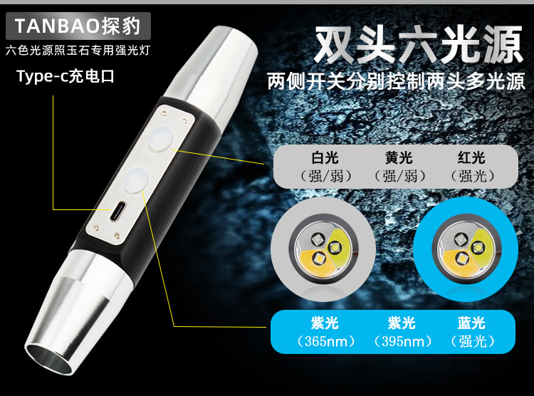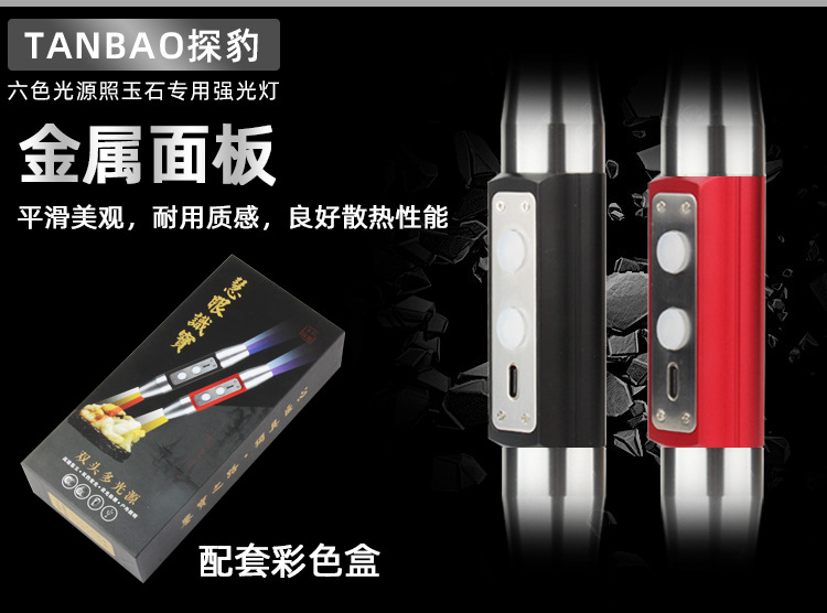 Senter khusus identifikasi daya tinggi untuk giok batu asli perhiasan lilin lebah kuning Wenwan enam sumber cahaya cahaya ungu