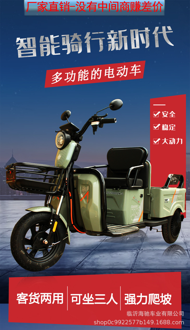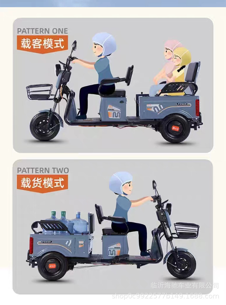 Tricycle listrik untuk perdagangan lintas batas, tricycle rumah tangga kecil dengan kanopi untuk lansia, kendaraan listrik untuk ekspor.