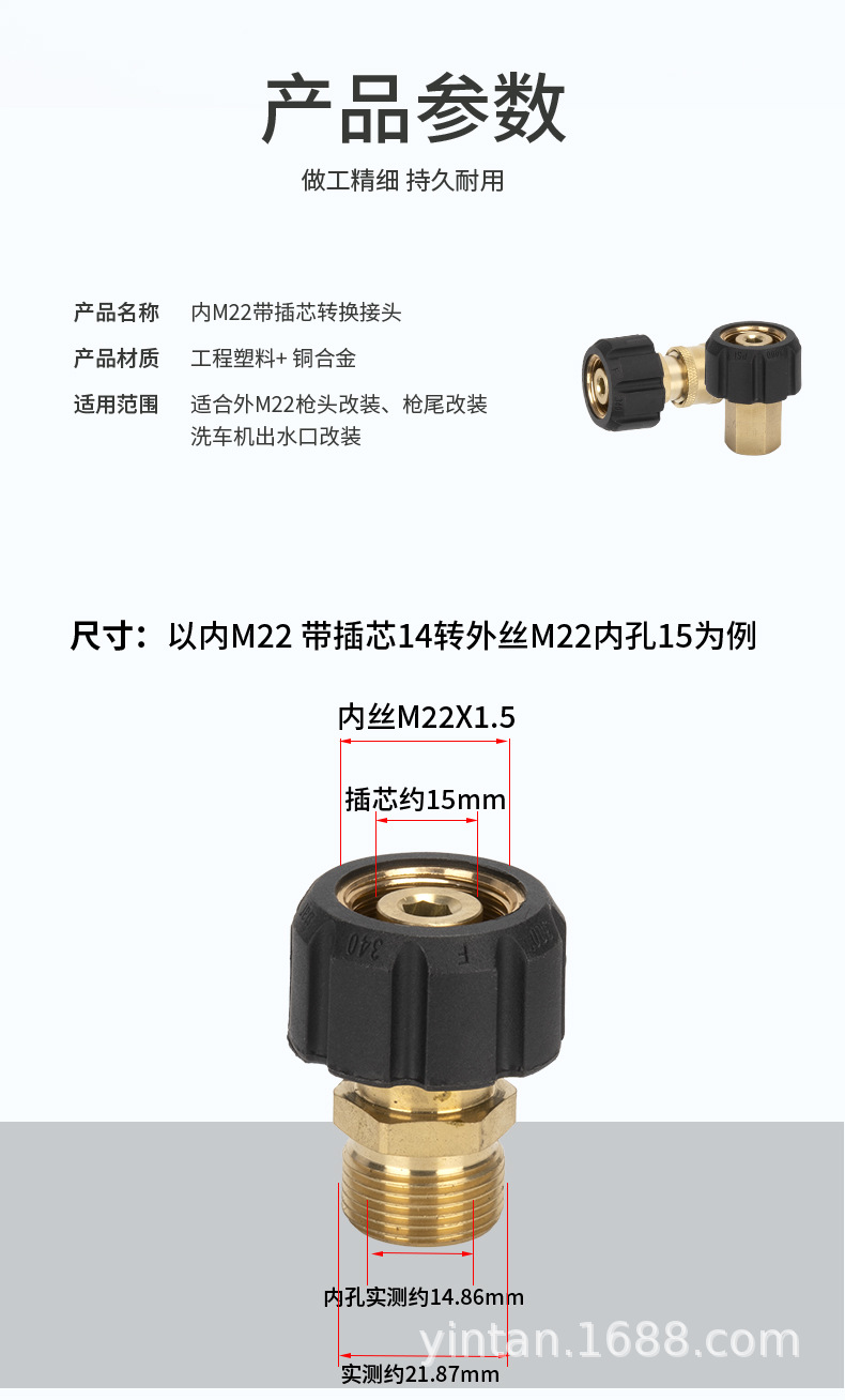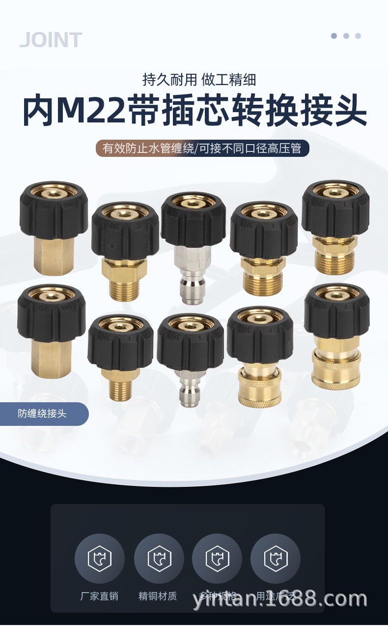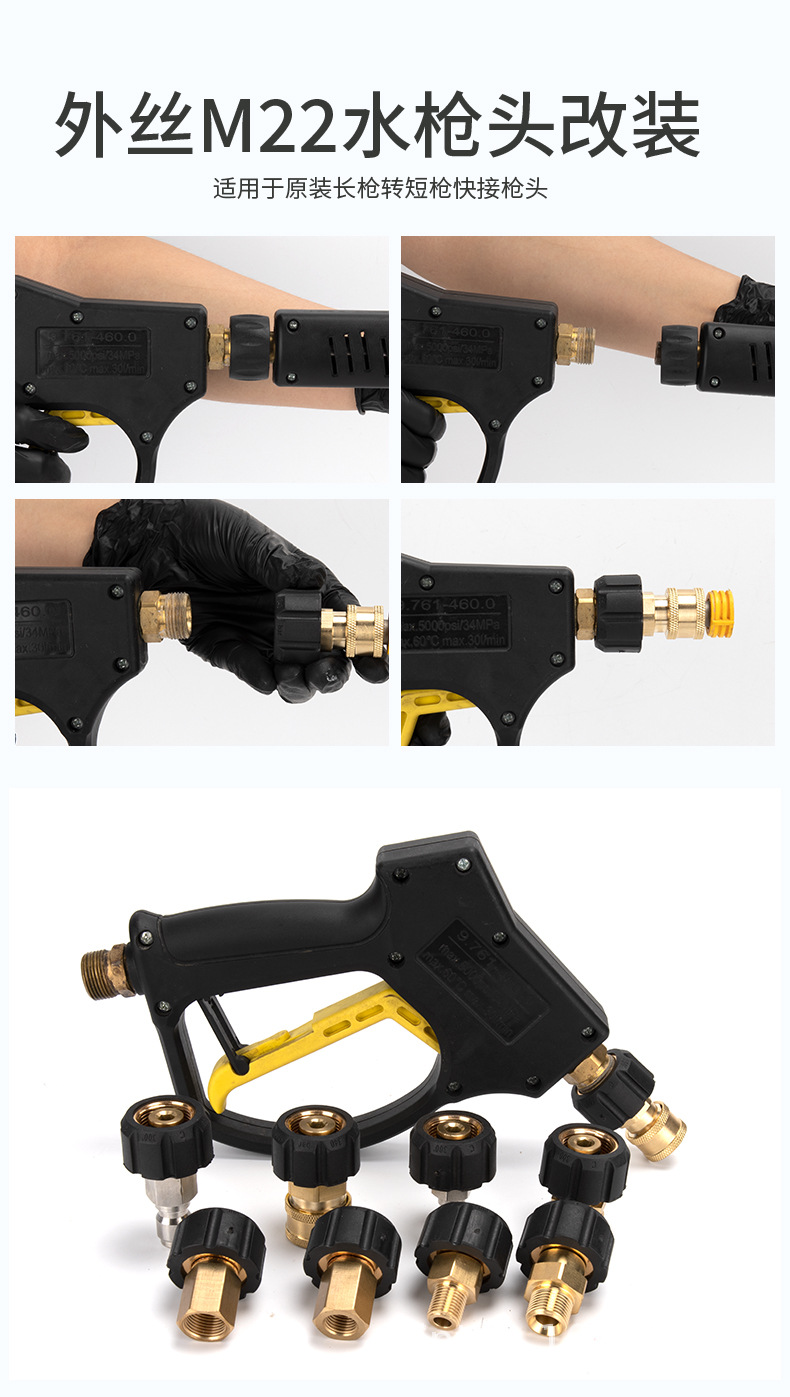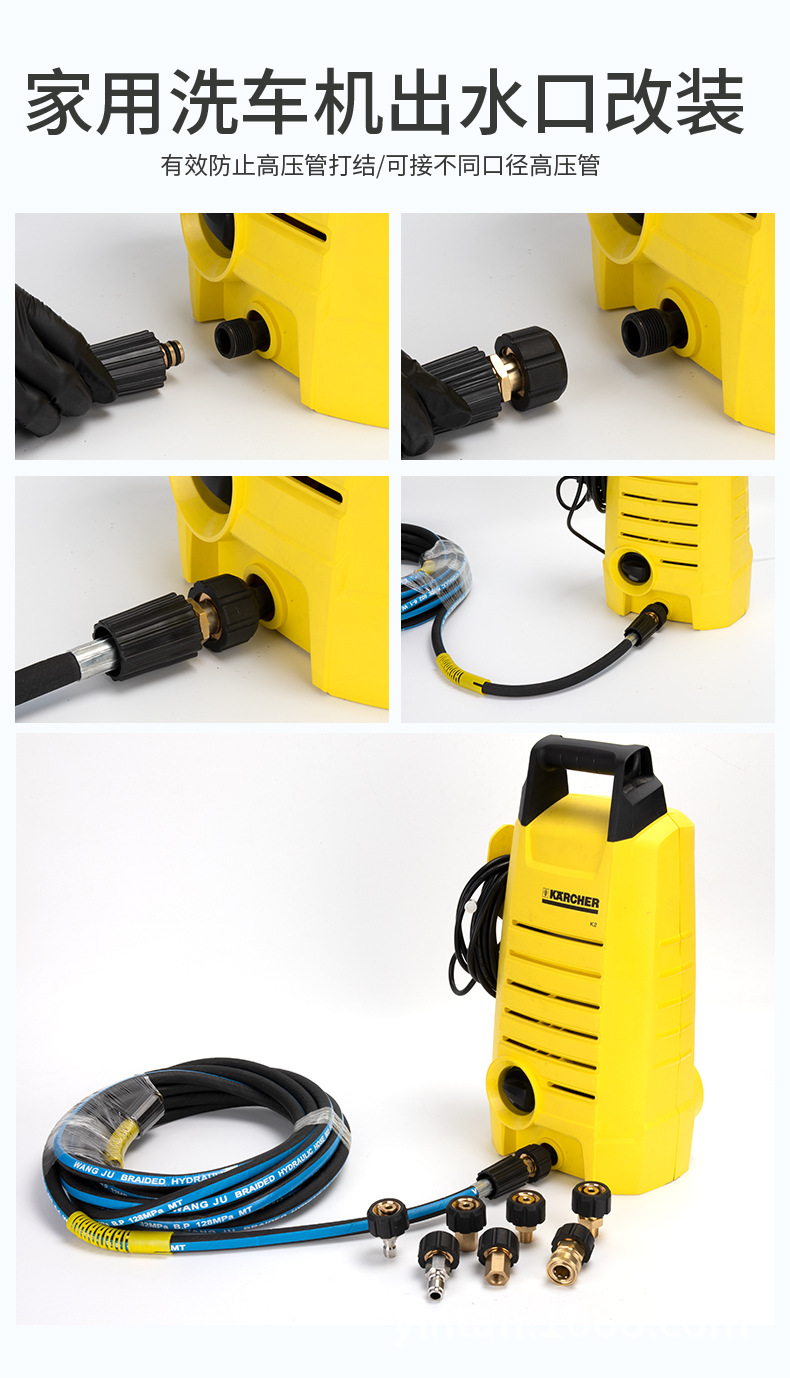 Aksesori mesin cuci tekanan tinggi, pipa air cuci mobil, gagang pistol air, konversi, pipa ekstensi sambungan tembaga, sambungan pasangan 14 & 15 tanggam