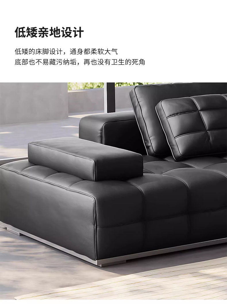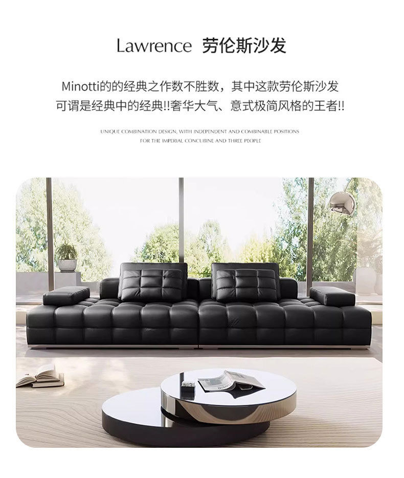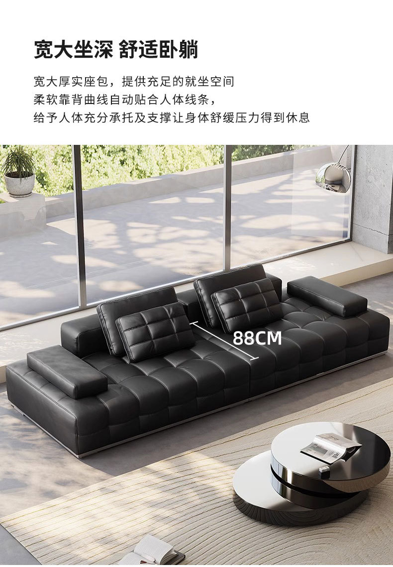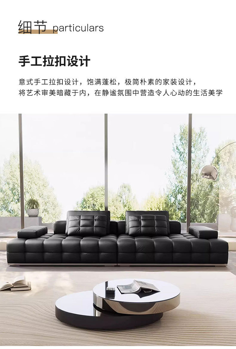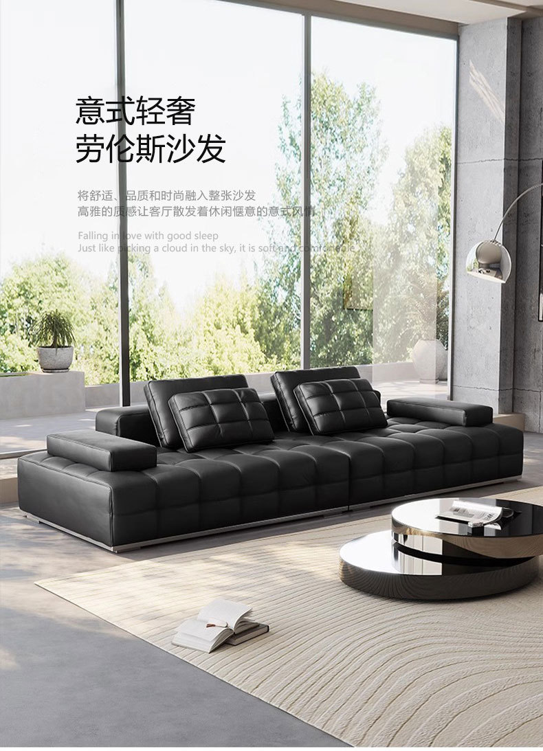 Sofa kulit barisan lurus Lawrence minimalis Italia ruang tamu sofa kulit hitam desainer Vila Apartemen besar