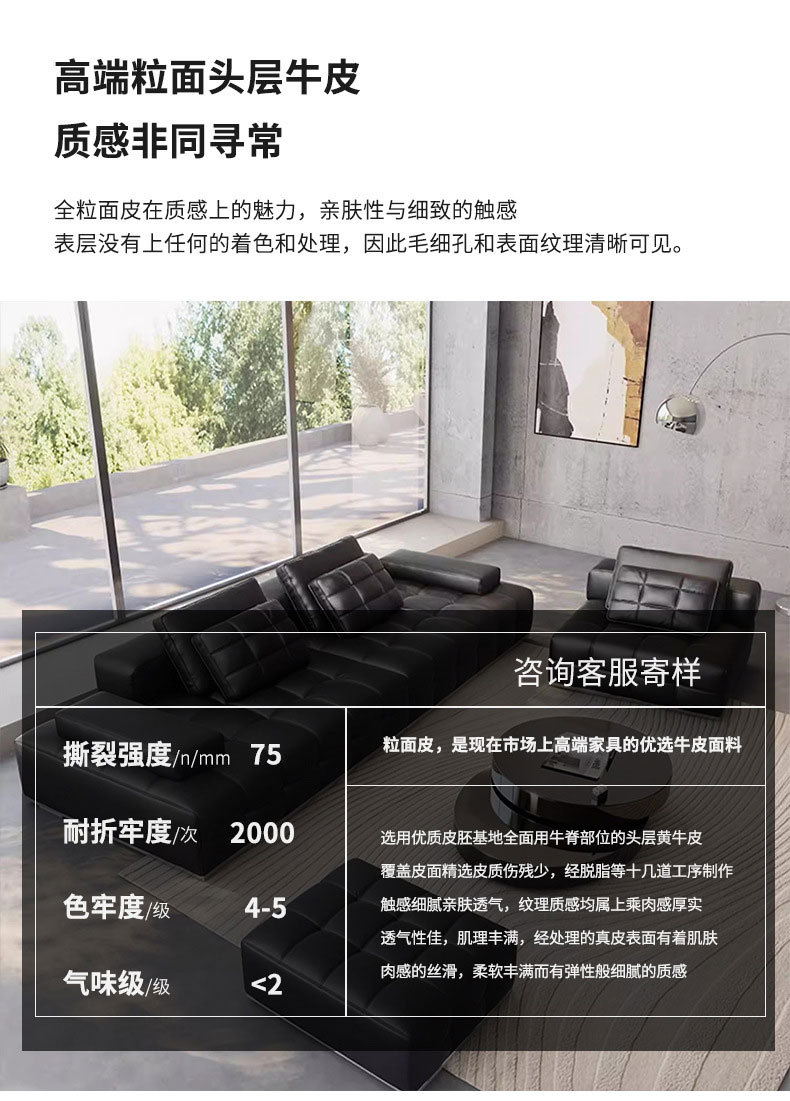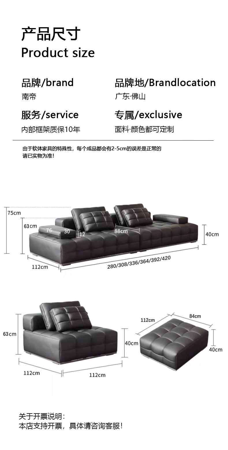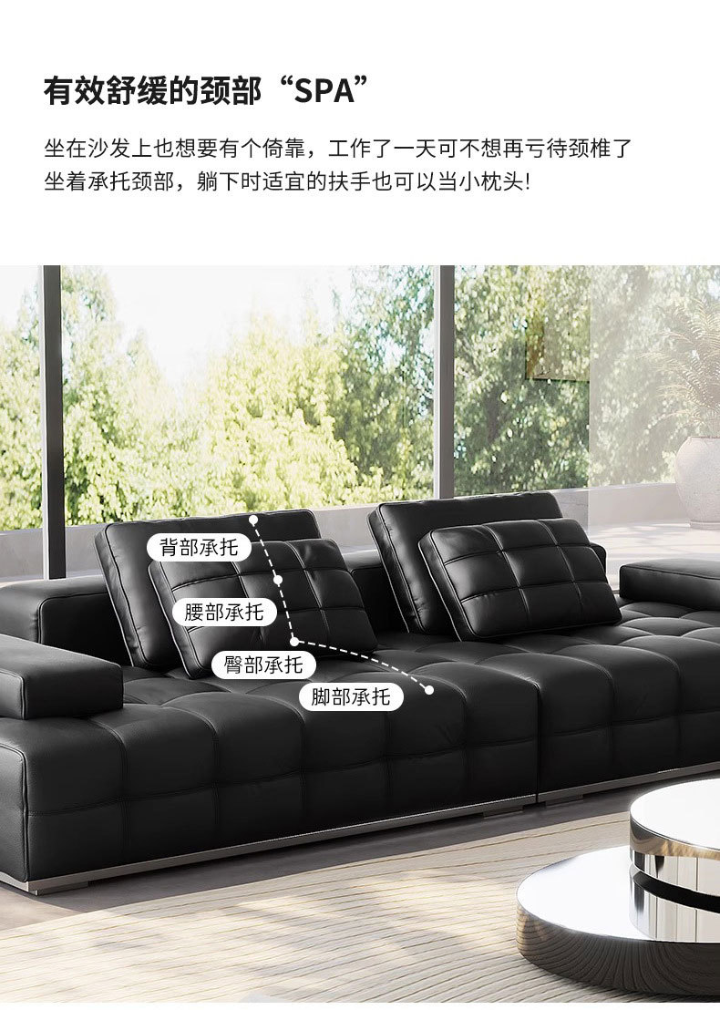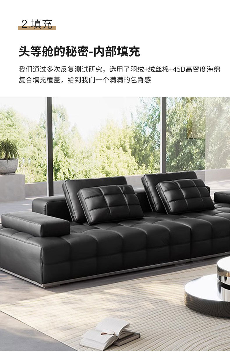 Sofa kulit barisan lurus Lawrence minimalis Italia ruang tamu sofa kulit hitam desainer Vila Apartemen besar