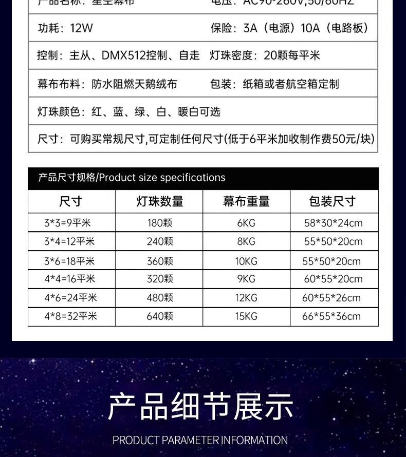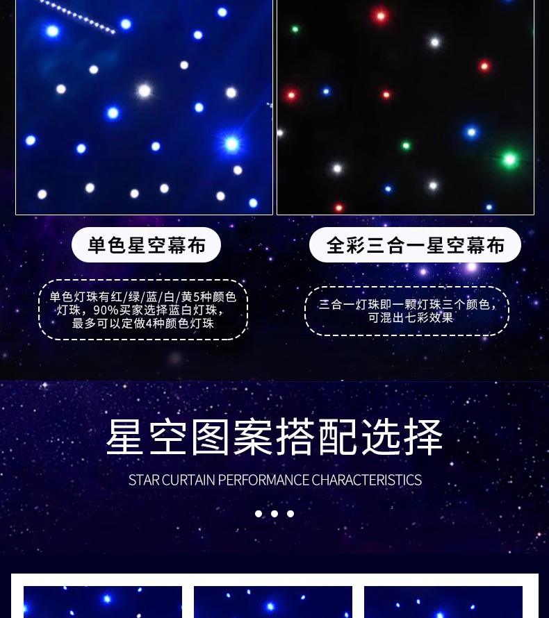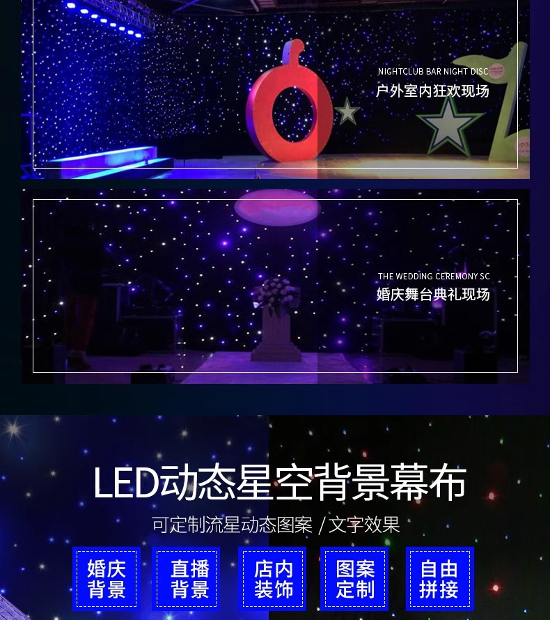 Tirai atas langit berbintang bar dinamis penampilan panggung pernikahan kain Bintang hujan metero Internet selebriti kain latar belakang led langsung